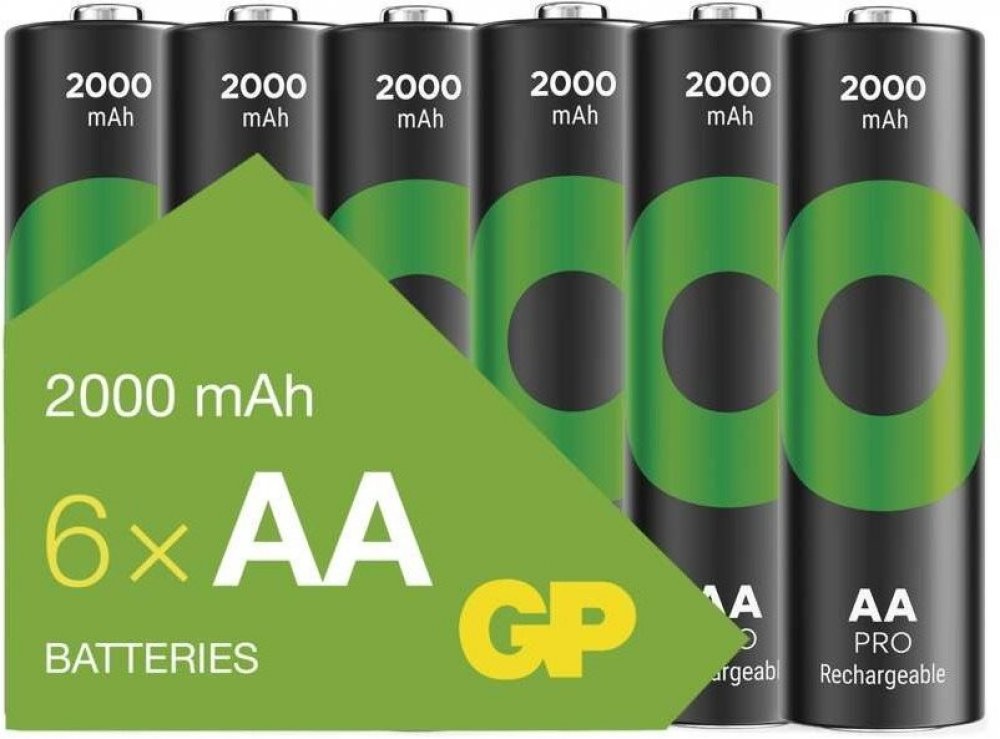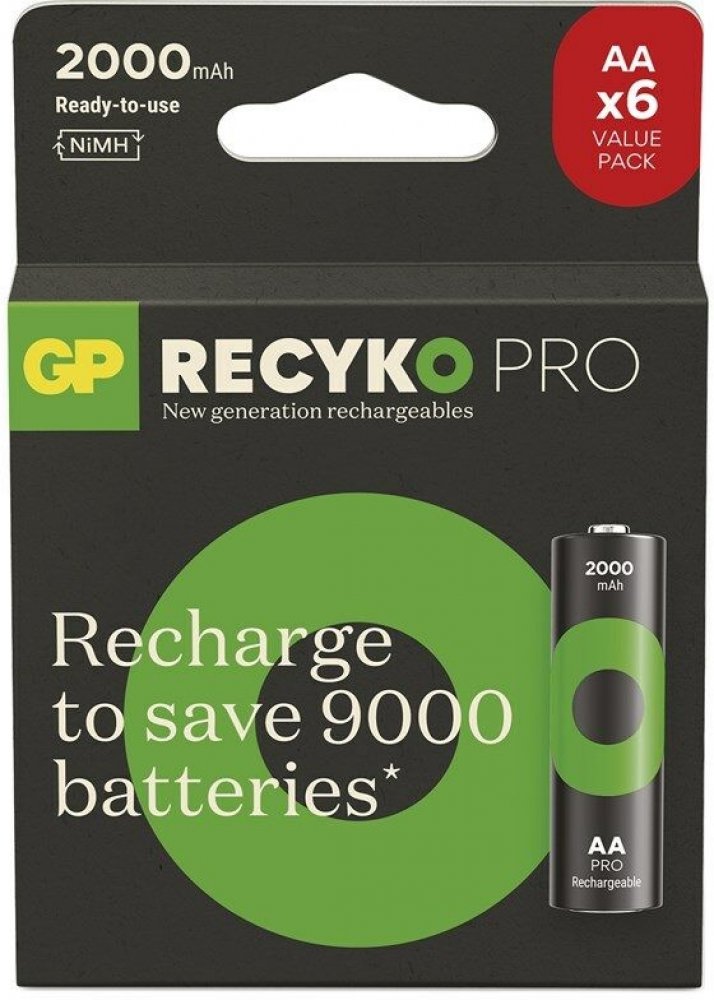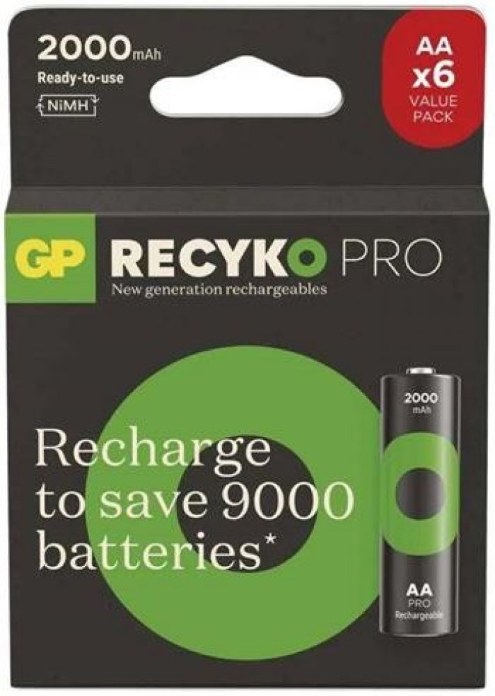 Nabíjecí baterie GP 6ks AA (tužka) 2000mAh Recyko Pro Sada 6 nabíjecích NiMH baterií pro všechna zařízení náročná na napájení. s vysokým výkonem a obrovskou životností až 1500 cyklů používáním těchto baterií výrazně snižujete spotřebu jednorázových baterií díky neuvěřitelně nízké míře samovybíjení můžou zůstat nabité na 70 % až po dobu 60 měsíců (a 80 % po dobu 12 měsíců nečinnosti) přednabité z v...