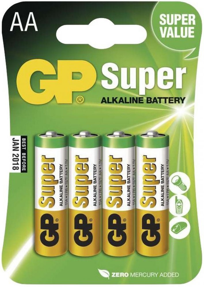 Základní řada alkalických baterií vyniká dobou provozu v energeticky nenáročných zařízeních. Výkonnost těchto baterií nejlépe vynikne při použití v přístrojích s malým dlouhodobým odběrem proudu jako např.: dálkové ovladače, hodiny, budíky, kalkulátory, různá bezdrátová čidla a číselníky. Oproti zinkouhlíkovým a zinkochloridovým bateriím disponuje dlouhou skladovatelností až 7let a ochranou proti vytečení. Společnost Top Battery je autorizovaným prodejcem GP Batteries (baterie, nabíječky baterií, svítilny a další sortiment). Parametry - ochrana proti vytečení - skladovatelnost až 7let - použití v zařízeních jako dálkové ovladače, hodiny, budíky, kalkulátory, různá bezdrátová čidla a číselníky