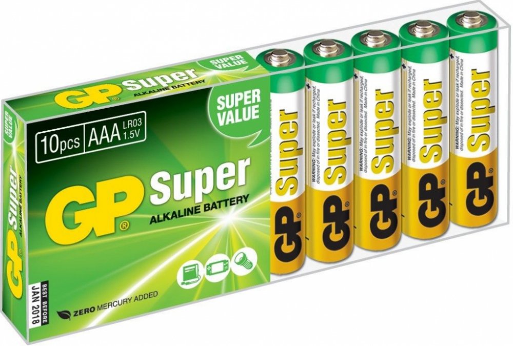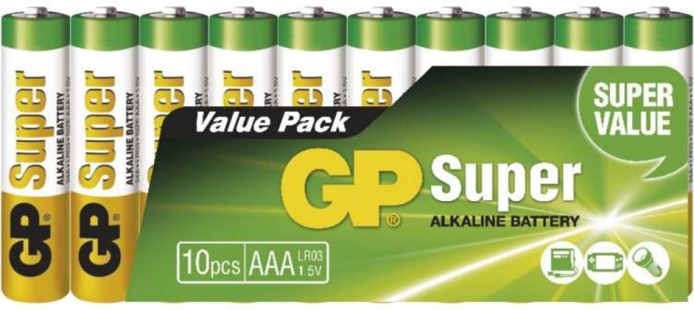 Baterie GP Super Alkaline patří k základní výbavě každé domácnosti. Nejlépe je využijete ve všech přístrojích s nízkým odběrem proudu, jako jsou hodiny, budíky, hračky, dálková ovládání, bezdrátové myši od počítače nebo klávesnice. Oproti obyčejným zinkouhlíkovým nebo zinkochloridovým bateriím vás zásobí až 7× větším množstvím energie.