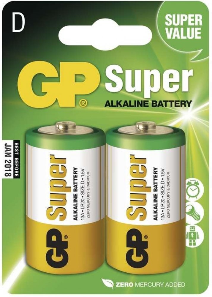 GP Batteries D 1.5 V alkalická 2 ks