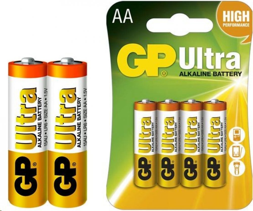 Alkalická baterie AA (R6) od společnosti GP Ultra se jmenovitým napětím 1,5 V. Jsou určeny pro profesionální a průmyslové použití. Baterie jsou určeny pro nejoblíbenější přenosná elektronická zařízení. Tyto vysoce výkonné baterie mají dlouhou provozní dobu ve všech typech zařízení napájených z baterií. Rozměry jsou 50,5 x 14,5 mm . Cena za 2 kusy.