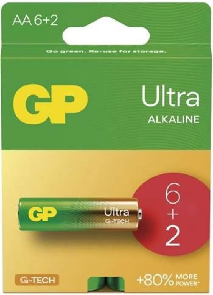 Alkalická baterie GP Ultra AA (LR6) B02238 Extra čas navíc! Představujeme vám nejnovější řadu alkalických baterií ULTRA, která je vybavena revoluční technologií G-TECH. Tato inovativní technologie poskytuje bateriím až o 80 % vyšší výkon než mají běžné alkalické baterie na trhu. S bateriemi ULTRA můžete očekávat dlouhotrvající a spolehlivé napájení pro vaše zařízení, ať už se jedná o dálkové ovlad...