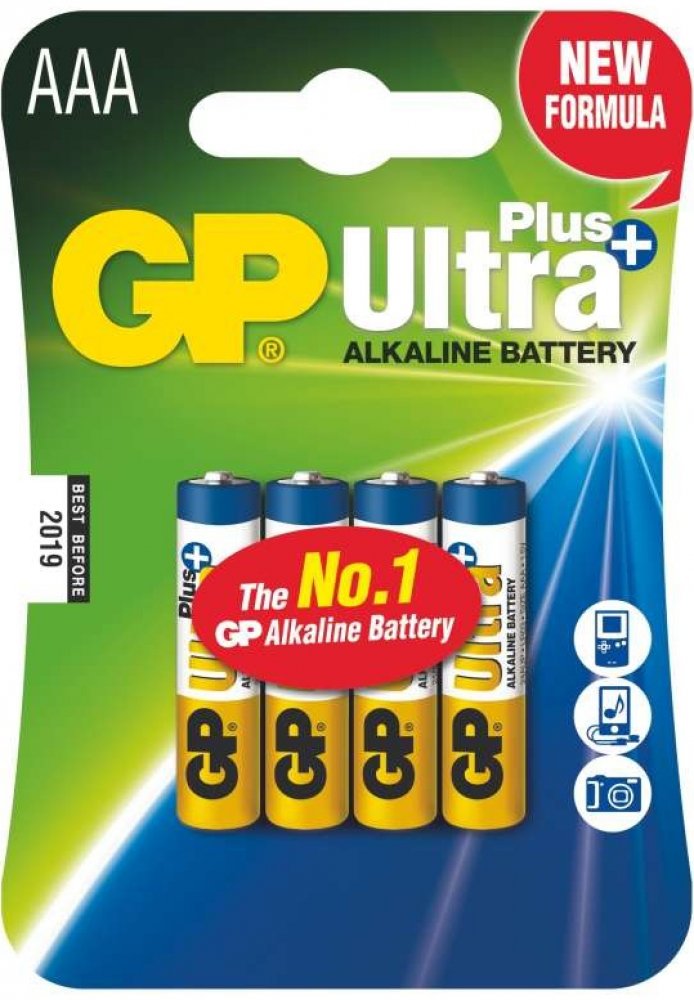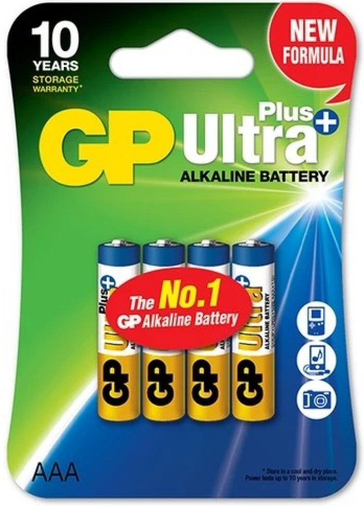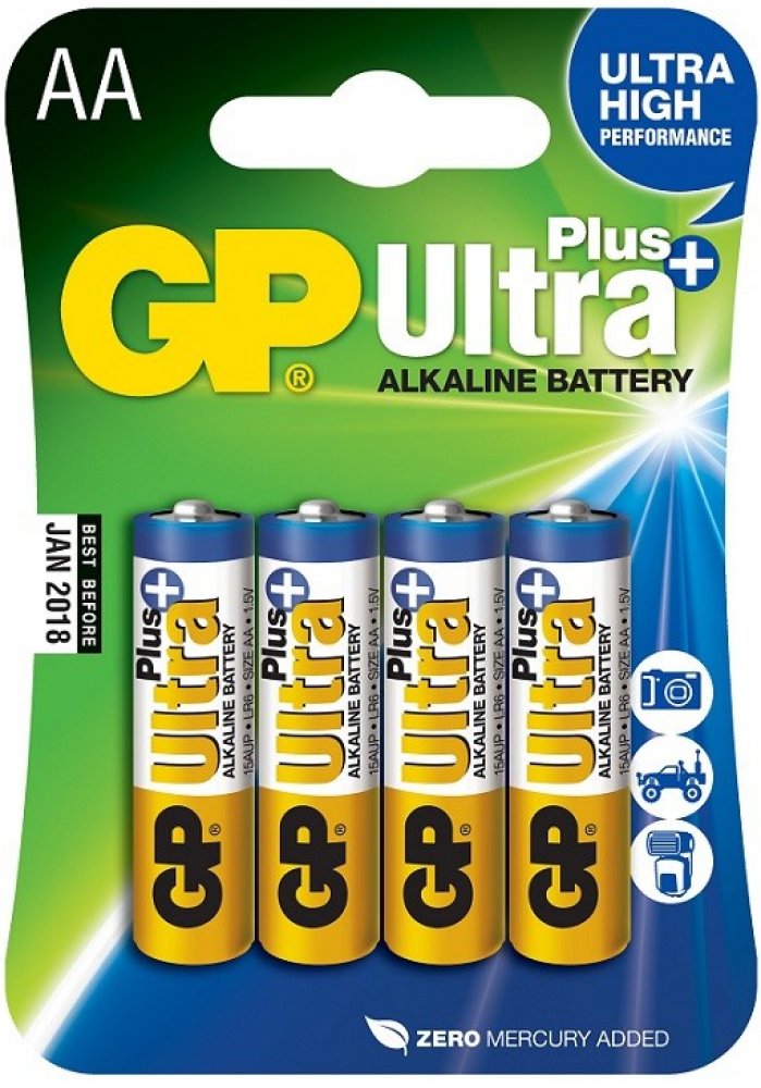 Alkalické baterie GP Ultra Plus Alkaline využívají zdokonalených materiálů a výrobních postupů k tomu, aby poskytly spolehlivý a dlouhý provozní výkon v náročných přístrojích. Nabízí uživatelům nerušený požitek s přenosnými přístroji. Výkonnost těchto baterií nejlépe vynikne při použití v přístrojích s velkým a nárazovým odběrem proudu, jako např. digitální fotoaparáty, fotografické blesky, MP3 a CD přehrávače, elektronické hry a slovníky nebo dálkově ovládané hračky.