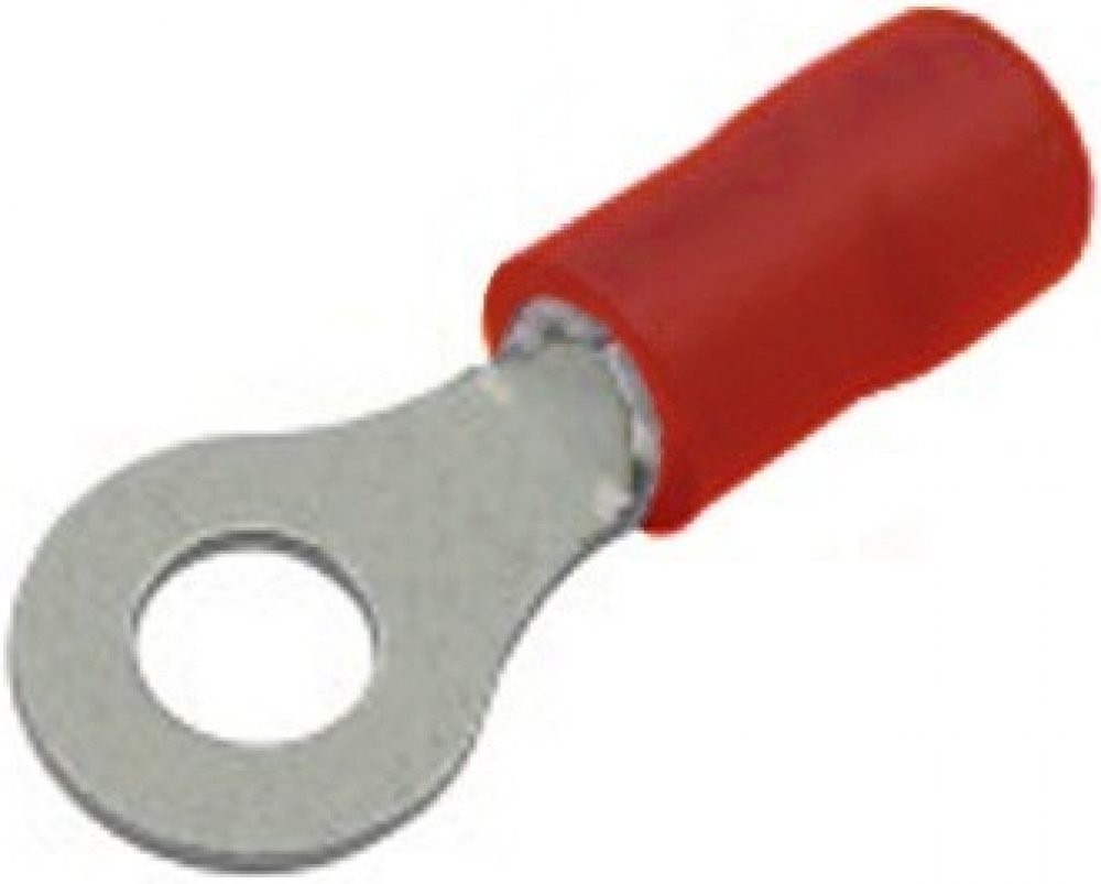Červené kabelové očko GPH RF-M3 k zakončení kabelů, pro průřez 0,5 - 1,5 mm2, svorník M3. Do konektoru faston očka vložíme oholený vodič a pomocí Faston kleští spojku secvakneme.