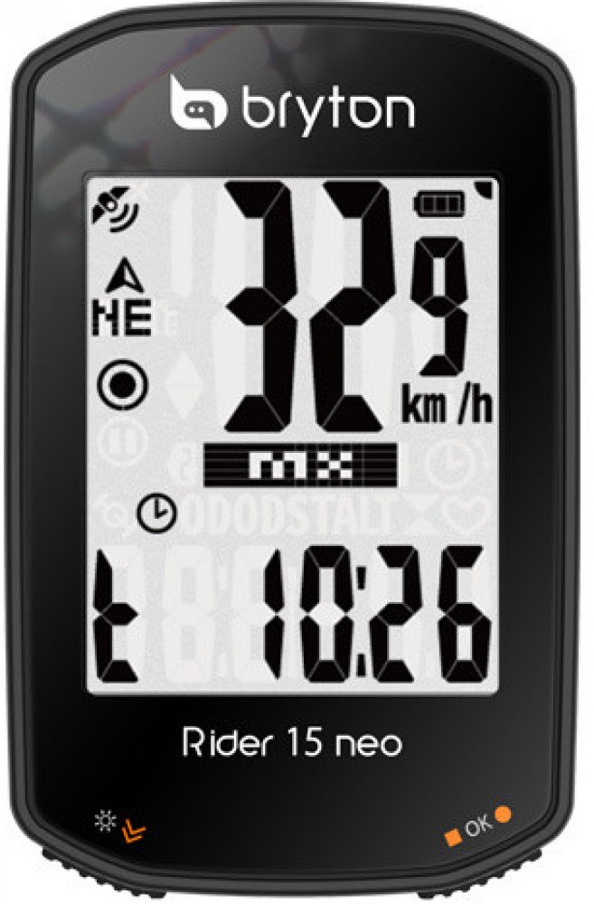Rider 15 neo je vybaven přehledným 2" displejem a 3 intuitivními tlačítky, vylepšeným softwarem, více než 21 funkcemi a orientačním režimem pro zobrazení směru, kterým jezdec jede. | Rider 15 neo je vybaven přehledným 2" displejem a 3 intuitivními tlačítky, vylepšeným softwarem, více než 21 funkcemi a orientačním režimem pro zobrazení směru, kterým jezdec jede.Obsah baleníRide 15 neo, návod, USB, BIKE MOUNT - držák pro RiderVětší, vylepšený displejDíky využití velkého 2" displeje je na zvětšené mřížce údajů o rychlosti na hodinkách Rider 15 neo ještě přehlednější. Vysoce kvalitní displej poskytuje křišťálově čisté údaje z jakéhokoli úhlu a prostředí bez rušivých vlivů.Absolutní přesnostDíky podpoře globálního navigačního družicového systému (GNSS) má Rider 15 neo rozsáhlejší pokrytí a větší obratnost v jakémkoli typu zeměpisné polohy, včetně rozsáhlých porostů stromů a budov nebo v horách, a také poskytuje širší škálu regionů díky zapojení satelitů GPS (USA), Galileo (EUR) a QZSS (Japonsko).Výkonná baterieKamera Rider 15 neo je vybavena výkonnou 16hodinovou baterií a podporou nabíjení z powerbanky na cestách, takže vám pomůže zdolat jakoukoli vzdálenost nebo vrchol!Podporuje až 21 funkcíZařízení podporuje 21 funkcí a bohaté datové podklady pro přesné měření výkonu při každé jízdě, které lze zobrazit v analýze po tréninku v doprovodné aplikaci Bryton Active (k dispozici pro iOS a Android). Rider 15 neo také integruje snímače rychlosti, kadence a srdečního tepu BLE včetně snímačů třetích stran po bezproblémovém spárování.Chytrá oznámeníPo snadném nastavení pomocí aplikace Bryton Active App přes BLE (k dispozici pro iOS a Android) uvidíte telefonní oznámení, včetně hovorů, textových zpráv a e-mailů, přímo na hodinkách Rider 15 neo. Tato výkonná funkce pomáhá udělat z hodinek Rider 15 neo definitivního chytrého cyklistického společníka pro každého uživatele hodinek Bryton.Osvětlete své jízdyNoční jízda se právě stala mnohem přesnější! Vysoce kontrastní obrazovka hodinek Rider 15 neo je vybavena výkonným vestavěným podsvícením a lze ji jasně osvětlit pro jízdu ve špatně osvětlených oblastech nebo pro pohodlnou jízdu v noci. Toto zařízení lze navíc kombinovat s jakýmkoli příslušenstvím pro jízdní kola a nedochází u něj k rušení jinými připojenými zařízeními nebo světly LED.Přizpůsobitelná data, zobrazení prostřednictvím aplikacePřizpůsobte si zobrazení dat pomocí aplikace Bryton Active! Po spárování s aplikací Bryton Active App lze datová pole/stránky přizpůsobit na základě tréninkových cílů prostřednictvím BLE v telefonu, a to velmi snadno!Synchronizace s Bryton Active AppUžívejte si bezproblémovou synchronizaci over-the-air se všemi novými aplikacemi Bryton Active App. Tréninková data lze automaticky synchronizovat prostřednictvím BT ze zařízení do aplikace Bryton Active App, kde lze zobrazit pokrok a grafickou analýzu a sdílet jízdy na sociálních sítích. Uživatelům umožňuje synchronizovat a plánovat tréninky, stahovat plánované výlety, upravovat nastavení zařízení a sítě a kalibrovat nadmořskou výšku, a to vše bez připojení k síti WLAN. Aplikace také kontroluje verzi firmwaru a údaje GNSS zařízení a upozorňuje uživatele na dostupnost aktualizací, čímž zajišťuje, že je vždy nainstalován nejaktuálnější firmware. Díky jednoduchému nastavení aplikací Bryton Active App STRAVA, TrainingPeaks a Selfloops Auto Sync je také snazší sdílet aktivity a porovnávat se s miliony.