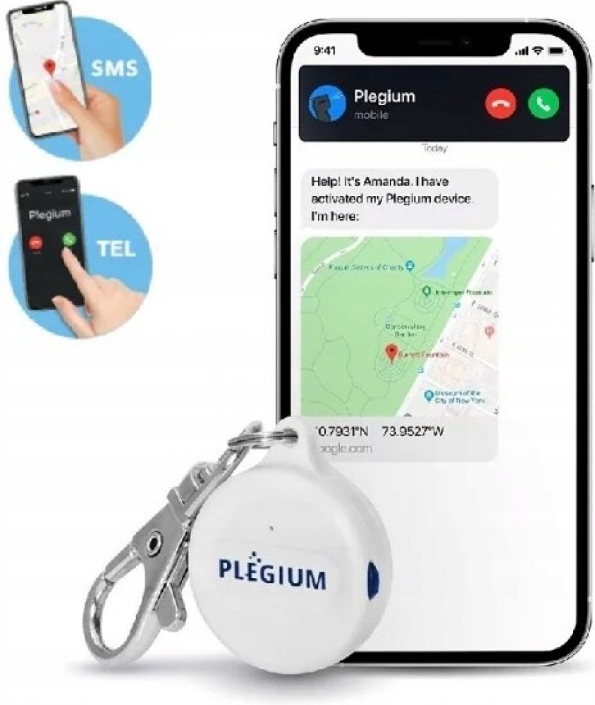 Inteligentní přívěsek na klíče Plegium Smart Emergency Button je přenosný, tichý alarmový přívěsek na klíče, který bezplatně odesílá automatické SMS zprávy o hrozbě s uvedením GPS polohy a také vyvolává hlasové hovory s nouzovými kontakty a informuje o hrozbě.