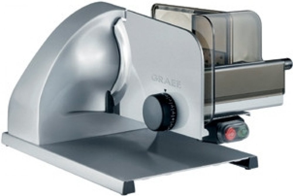Pohon nářezového stroje zajišťuje výkonný 185 W motor se šnekovým převodem(tichý převod s velkým kroutícím momentem). Tloušťku řezaného produktu lze nastavit od 0 - 15 mm.
