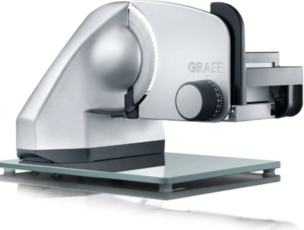 Potřebujete nakrájet uzeniny, salámy případně i sýry a pečivo? S manuálním nářezovým strojem C 20 CLASIC od německé firmy Graef to není žádný problém. Požadovanou sílu řezu si můžete libovolně a snadno nastavit od 0 do 20 mm. O řez se postará zubatý nerezový nůž o průměru 170 mm s nepřilnavým povrchem zajištěný bezpečnostním zámkem a dětskou pojistkou. Nepřilnavá vrstva výrazně snižuje tření a namáhání stroje zejména při krájení sýru, ale i pečiva, a usnadňuje čištění.