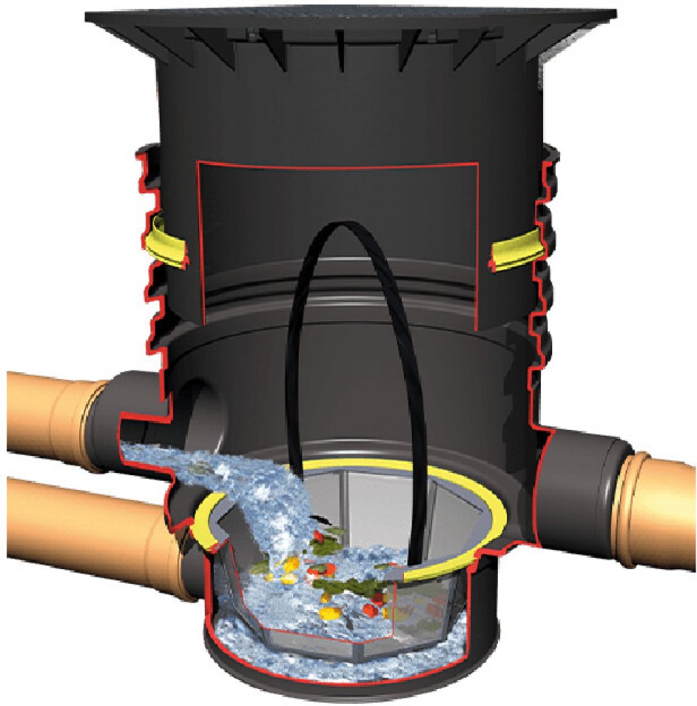 Filtrační šachta, kterou doporučujeme před akumulační nádrže na dešťovou vodu nebo vsakovací objekty. Díky jemnému nylonovému koši se do objektu nedostane listí, větvičky a podobné nečistoty. Šachtu je třeba pravidelně čistit. Jak často záleží na přítomnosti stromů v okolí. Výhodou filtrační šachty proti filtračnímu koši pod nátok do akumulační nádrže je její snadnější čištění. Stačí uvolnit jeden šroub a jednoduše vytáhnout koš. Poklop nádrže je na tři šrouby a jeho vyndání je složitější.