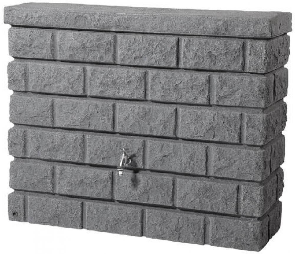 Nadzemní akumulační nádrž na dešťovou vodu Rocky Wall v imitaci šedého kamene o objemu 400 l