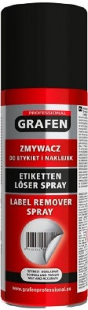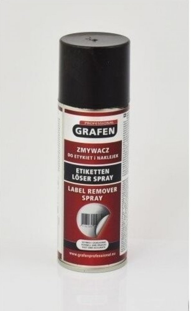 Grafen odstraňovač etiket ve spreji má speciální složení pro rychlé a účinné odstraňování papírových samolepicích etiket z různých typů povrchů. Díky účinnému složení čistí bez zanechání zbytků lepidla na daném povrchu. Čistí do hloubky, není korozivní, neškodný pro většinu povrchů, neobsahuje CFC, halogenované rozpouštědlo..