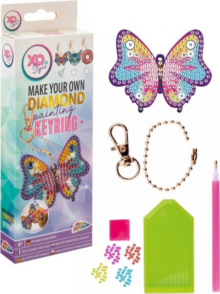 Sada pro výrobu barevného přívěsku ozdobeného diamantovými kamínky. Diamantové malování je nejen skvělý způsob relaxace, ale také zábava pro všechny bez ohledu na věk.Obrysový přívěsek má předtištěnou šablonu. V sadě najdete vše potřebné - šablonu, pero, kamínky, misku i vosk. Pomocí aplikačního pera nanášíte kamínek za kamínkem na označená místa. Nejsou potřeba žádné umělecké schopnosti.Balení obsahuje: přívěsek, pero na aplikaci kamínků, misku na vysypání kamínků, vosk na nalepení, sadu barevných kamínků. Vhodné od 6 let. Diamantové malování - postup: Přívěsek je potažen lepidlem a překrytý průhlednou folií. Kamínky požadované barvy vysypejte do misky. Do hrotu pera naberte vosk, díky kterému se kamínky snadno přichytí na pero, a nanášejte na obrázek. Kreativní set vyrob si svůj diamantový přívěsek. Součástí balení je přívěsek, více než 200 barevných diamantů/kamínků, lepící sada s perem k lepení a umisťování drahokamů do přívěsku, řetízek a karabinka Přívěsek na klíče s diamantovou malbou. Klíčenka je zdobená diamantovou malbou. Klíčenka se dodává jako motýl, kočka, jednorožec nebo srdce. Vhodné pro děti od 6 let.