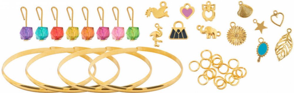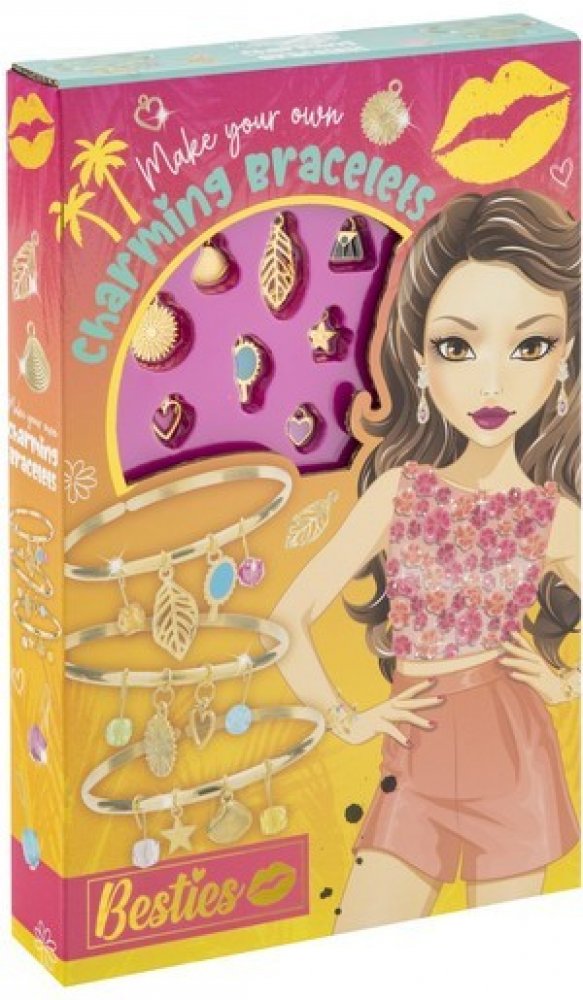 Sada na výrobu náramků s přívěsky Besties Sada na výrobu náramků s přívěsky – obsahuje 4 náramky, 12 přívěsků, 8 přívěsků s různobarevnými kamínky a kroužků na uchycení přívěsků. Parametry: