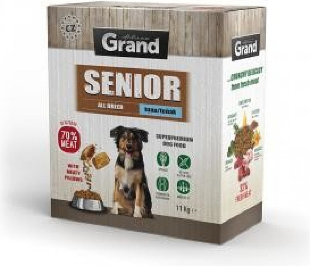 Grand pro seniory pro všechna plemena s nízkou aktivitou tuňákové Grand 11 kg superprémiové suché tvrdé Grand Deluxe 28 % ovoce / zelenina střední (200-500mg) 11 % 4.5 % 1.3 % 1.1 % 7.4 % vysoká deklarováno (>40%) standardní podporující (>24%) pro citlivé trávení (7–10 dní) základní možné základní