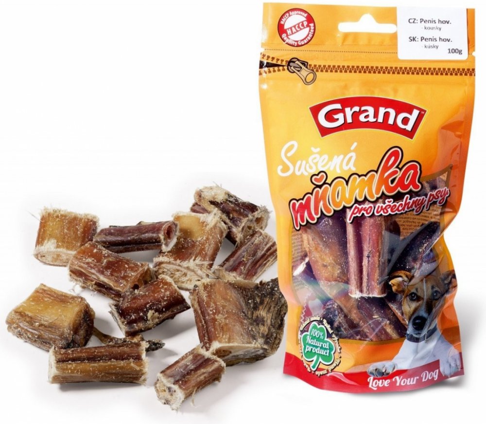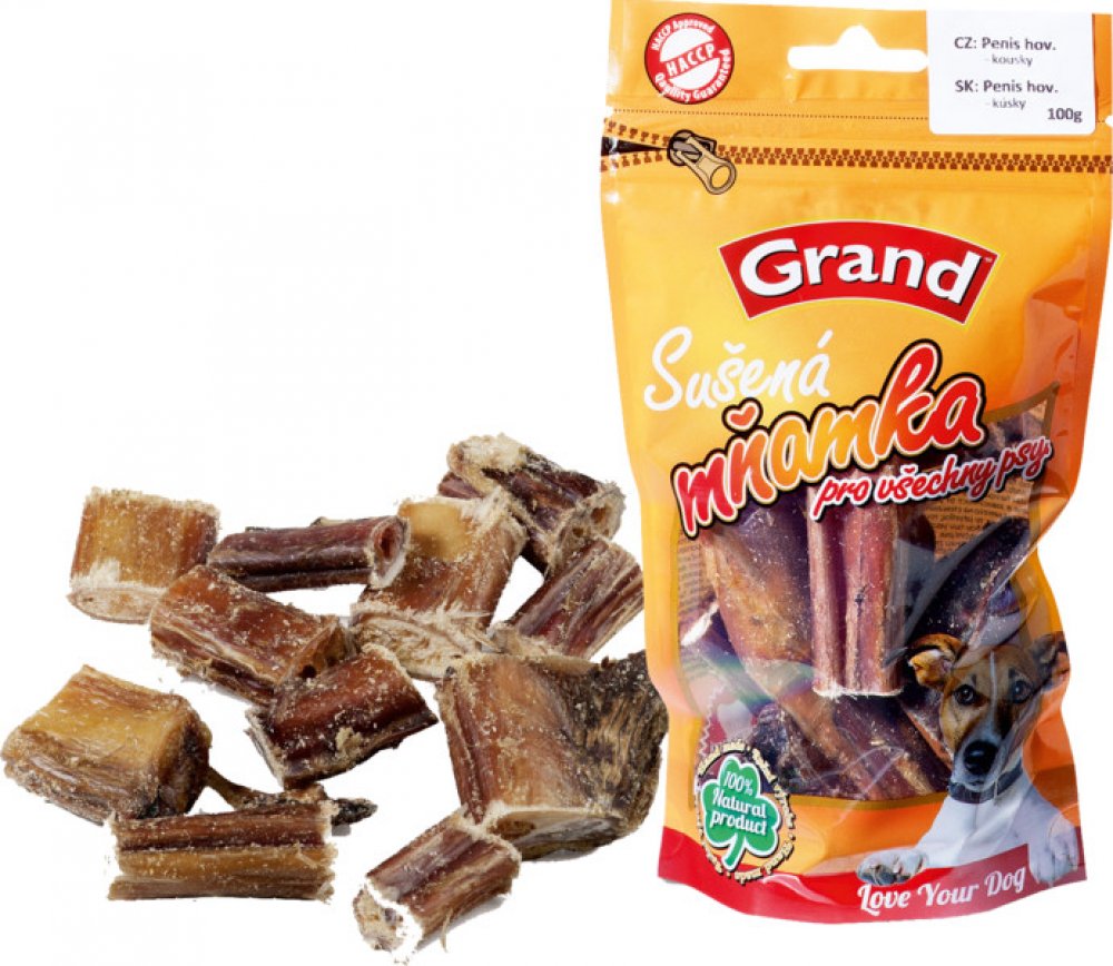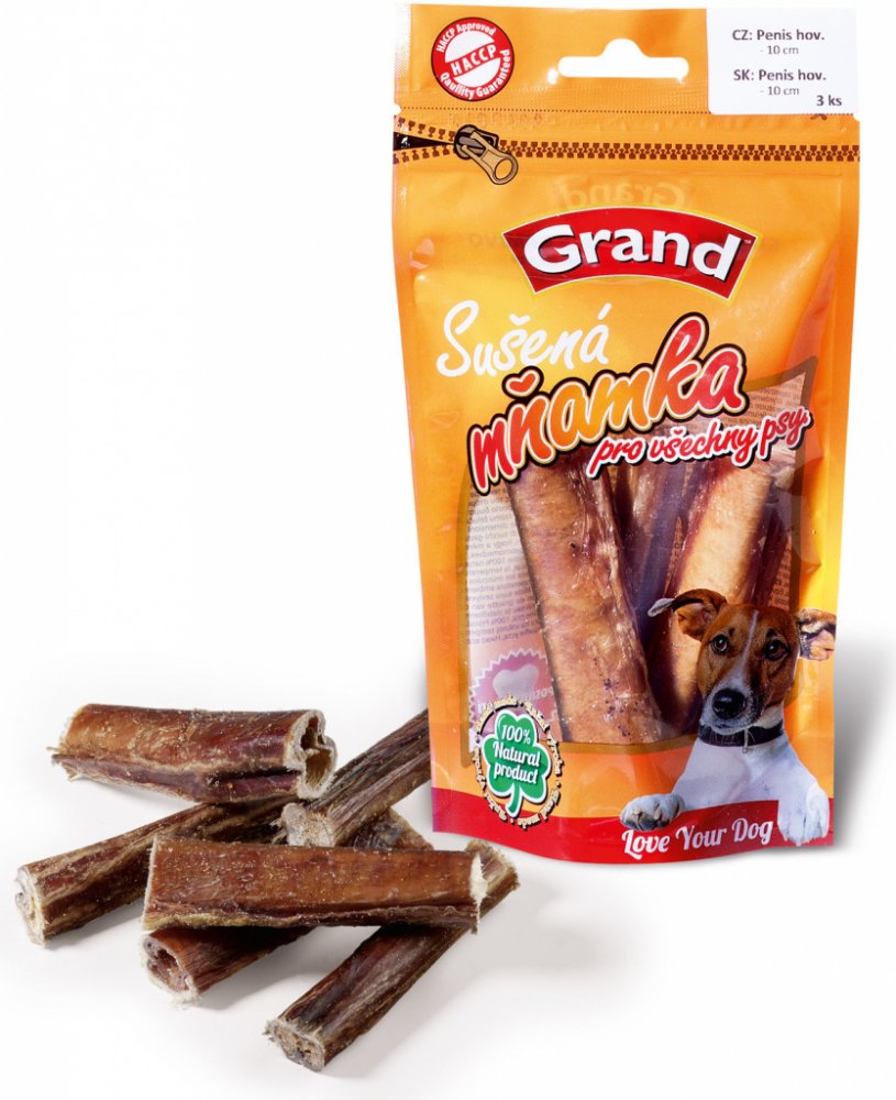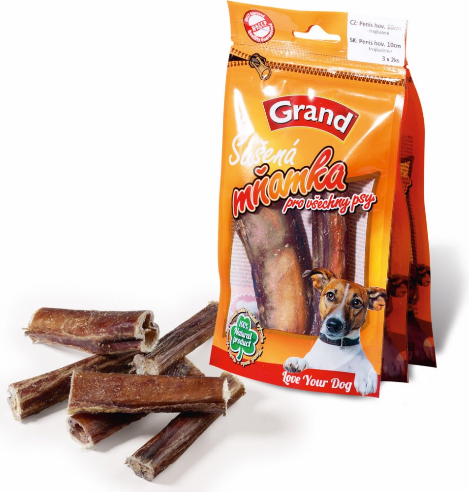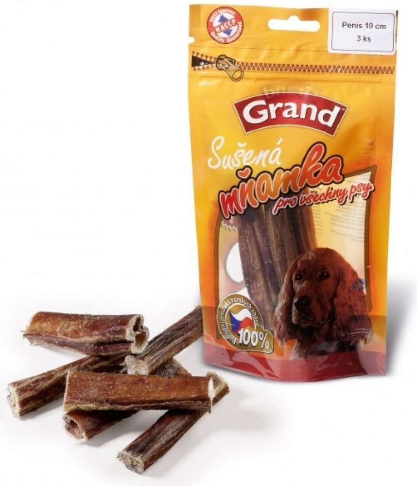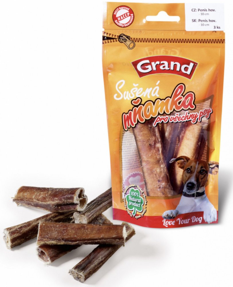 GRAND Penis 10 cm 3 ks - Kvalitní sušené doplňkové krmivo pro psy. 100% penis hovězí sušený. - Obsahuje: 100% penis hovězí sušený.