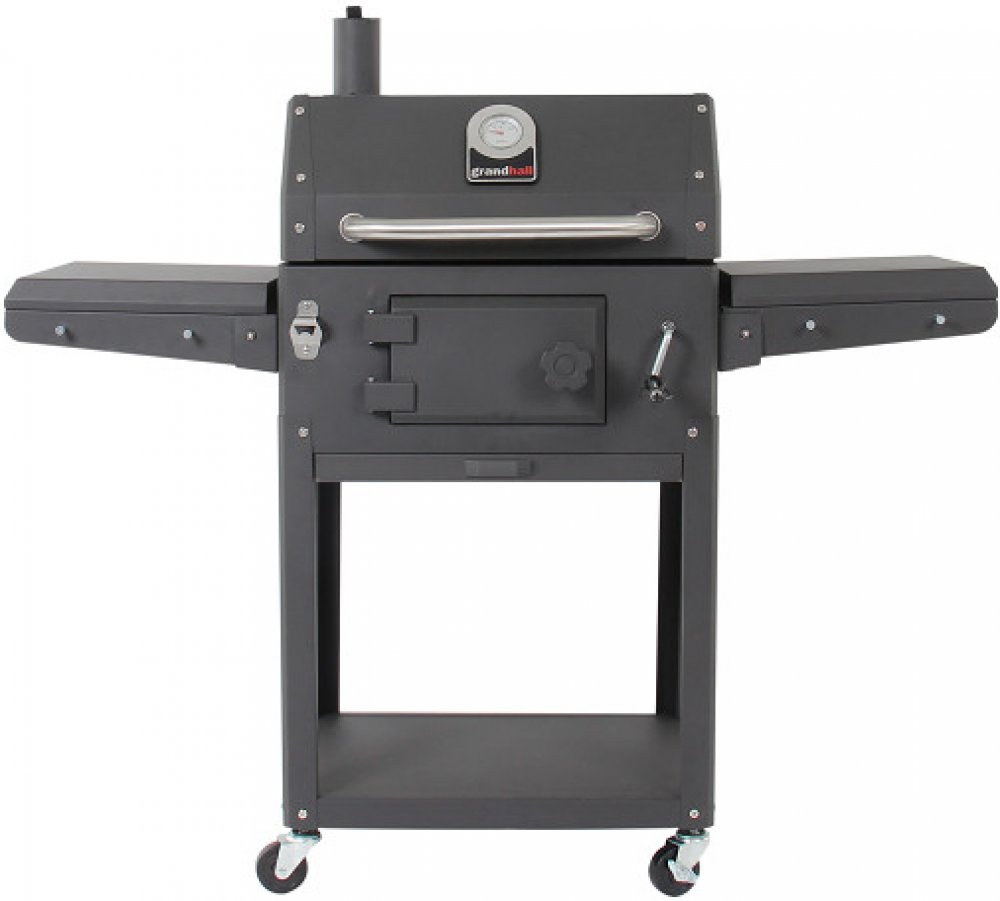 Atraktivní gril na dřevěné uhlí se těší nebývalé oblibě uživatelů, kteří preferují grilování na uhlí, ale vyžadují komfort grilu plynového. Robusní konstrukce, celolitinový rošt a tál, nastavitelná výška palivového roštu pro lepší kontrolu teploty pomocí vnější kliky, přední dvířka pro pohodlné a čisté přikládání paliva. Sklopné postranní police šetří místo při skladování grilu, bonusem je integrovaný otvírák láhví na přední stěně grilu. Grilovací plocha rozdělena na 2 litinové rošty a litinový tál. Gril je opatřen teploměrem ve víku, háčky na náčiní, čtyřmi kolečky, sklopnými policemi a odkládacím prostorem pod grilem. Ovládání teploty v grilu pomocí průduchů pod policemi a klapkou komínku, dále potom posuvnou výškou palivového toštu.