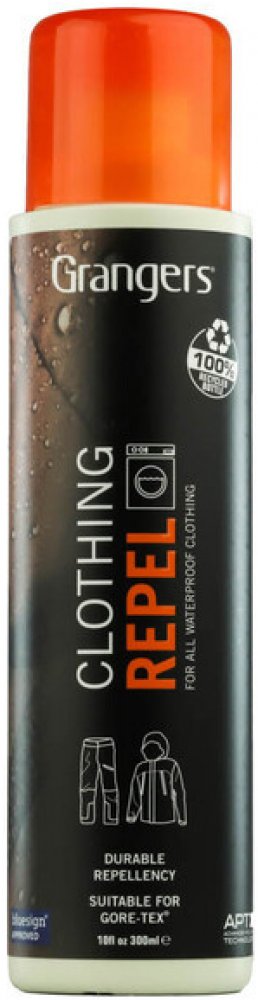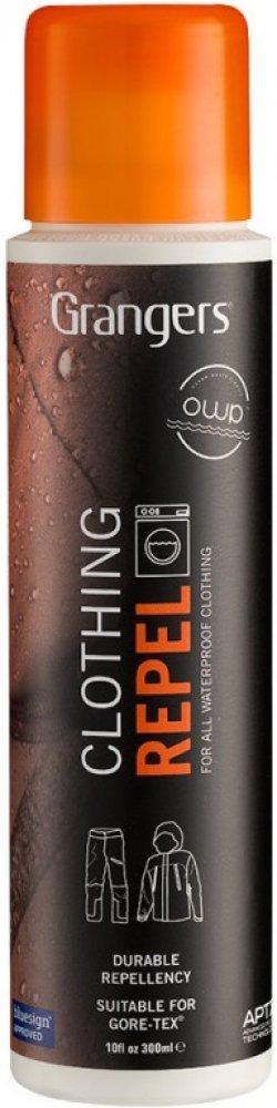 Impregnační prostředek Granger's Clotching Repel OWP 300, který během pracího cyklu obnoví voděodolnost nepromokavého oblečení a zachová jeho prodyšnost. Pro delší účinnost impregnace, použijte sušičku (v případě, že to dovolují prací symboly).