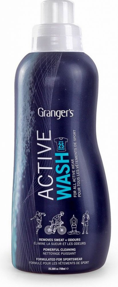 Vysoce účinný čistící prostředek Active Wash od firmy Grangers, který odstraňuje zápach a výborně čistí veškeré sportovní oblečení. Byl speciálně vyvinut na údržbu funkčního prádla a je vhodný na syntetické tkaniny i merino vlnu. Active Wash nepotlačuje zápach, ale zcela jej odstraňuje. Zároveň napomáhá rychlejšímu schnutí a zlepšení prodyšnosti.
