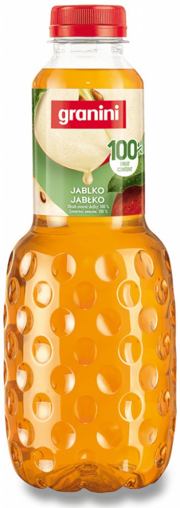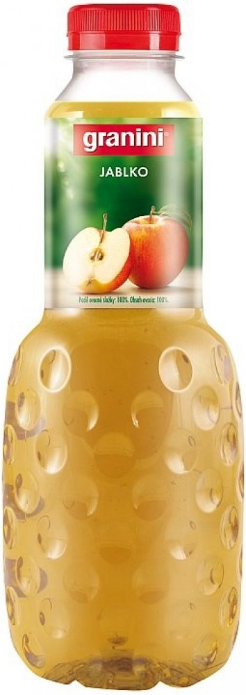 Džus Granini Jablko 100%. Granini přináší ovocné potěšení připravené výhradně ze šťávy a dužiny sluncem dozrálých jablek. Džusy Granini jsou proslulé lahví s typickými dolíčky a obsahují jen to nejlepší, nejkvalitnější ovoce. Objem: 1 l. Cena za ks.