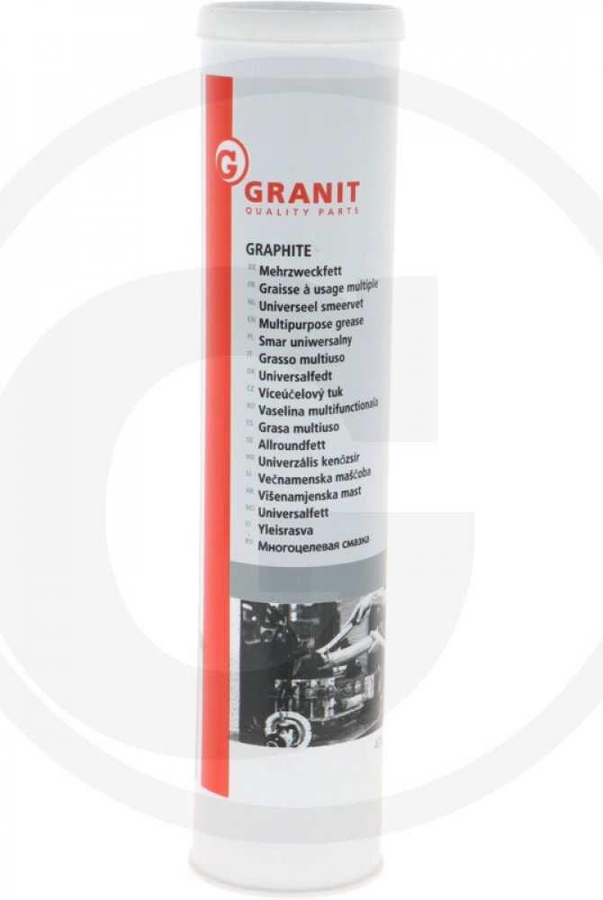 GRANIT víceúčelové grafitové mazadlo je speciální vysokotlaké mazivo, vyvinuté pro použití v náročných provozních podmínkách. Toto mazadlo na bázi lithiového mýdla obsahuje vysoce kvalitní grafit, který mu dodává výborné vlastnosti snižující tření a ochranu při nouzovém chodu. Je určeno pro aplikace, kde jsou ložiska vystavena extrémním tlakům a rázovému zatížení.