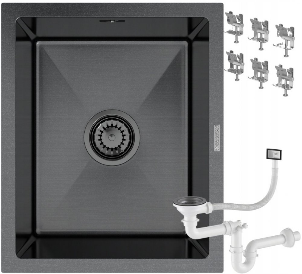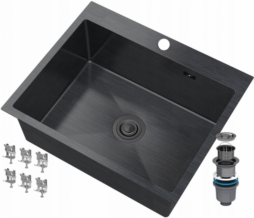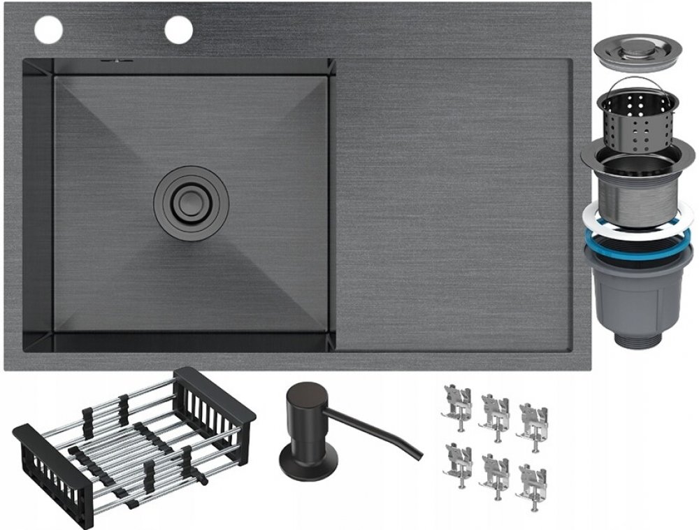 *Aukce se týká dřezu s sifonem v černé barvě a ocelové odkapávací vložky a upevňovacích prvků k dřezu, je možné dokoupit baterii a dávkovač tekutiny na jiné aukci