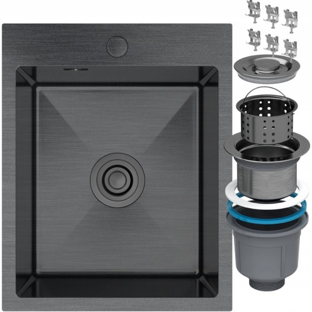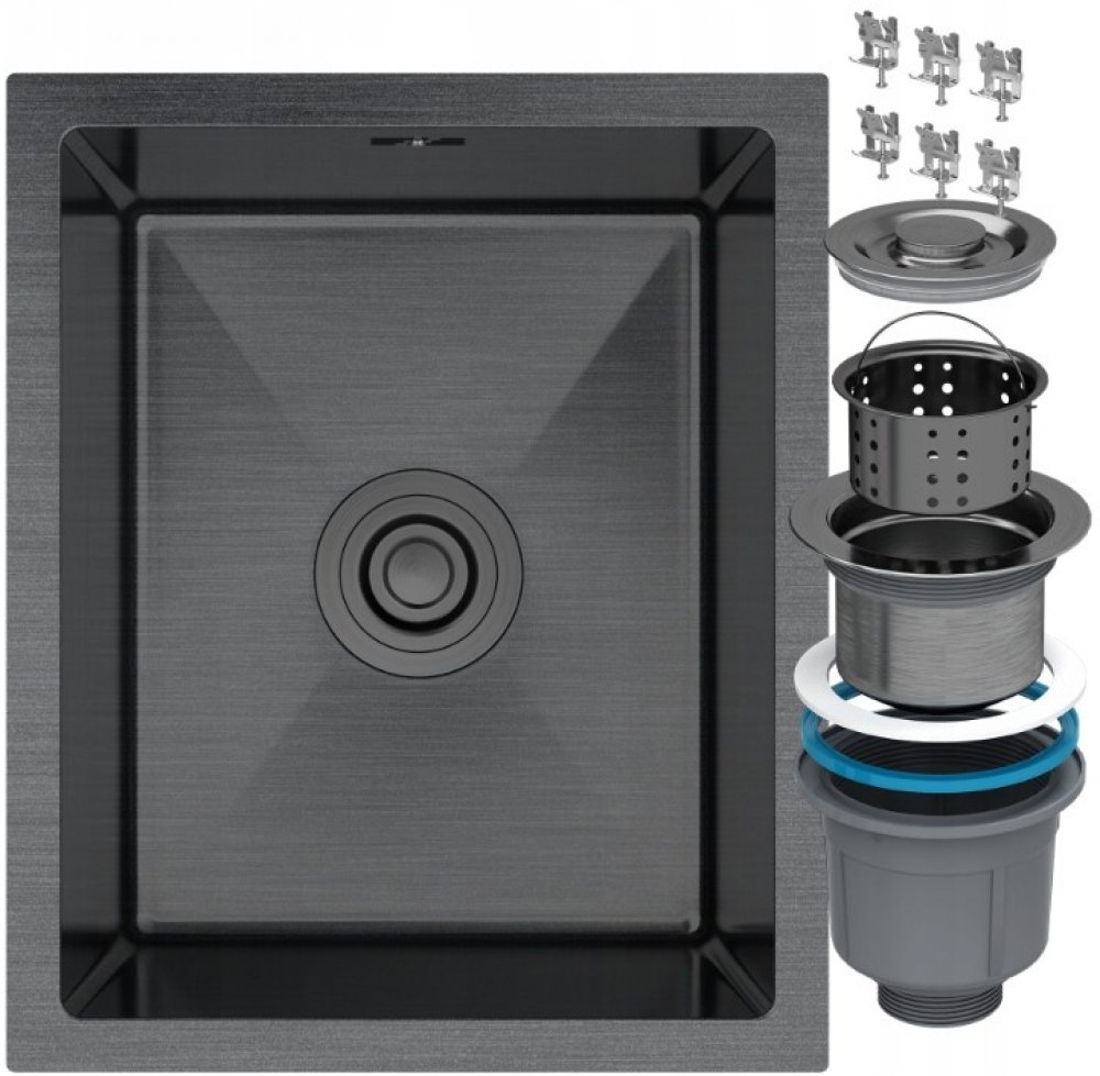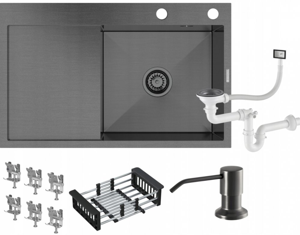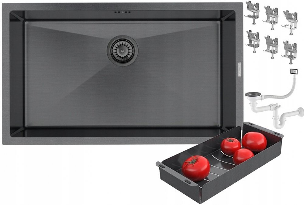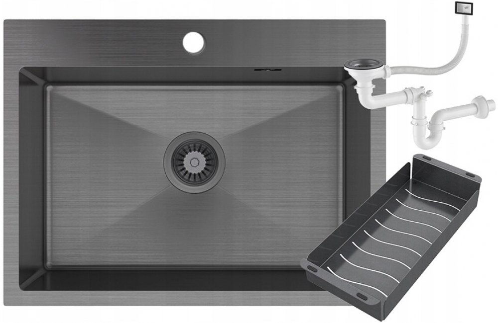 OCELOVÝ JEDNOKOMOROVÝ DŘEZ S ODKAPÁVAČEM ČERNÝ BARI74 SADA KOŠÍKŮSADA OBSAHUJE: