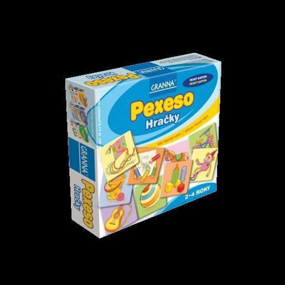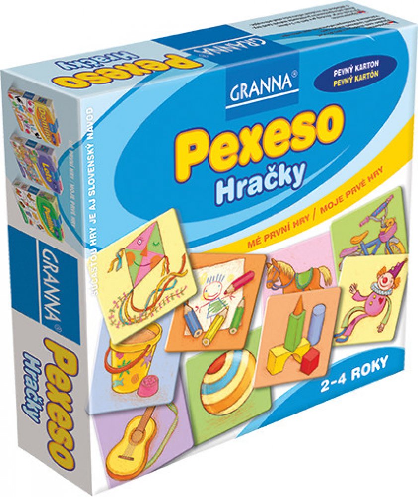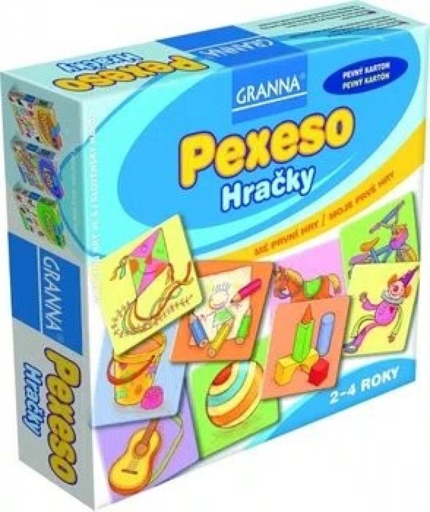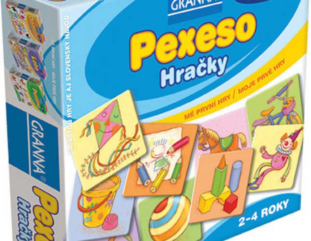 Dalším přírůstkem do řady MÉ PRVNÍ HRY je pexeso s motivy hraček. Pravidla přinášejí dvě varianty hry. Nejmenší děti rozvíjejí své pozorovací schopnosti při hledání dvojic obrázků, o něco starší hráči už cvičí svou paměť a soustředění při hře podle pravidel klasického pexesa. Díky aktivní účasti rodičů se děti navíc mohou učit rozeznávat barvy a pojmenovávat hračky vyobrazené na kartičkách; rozšiřují si tak svou slovní zásobu a zdokonalují své vyjadřovací schopnosti.