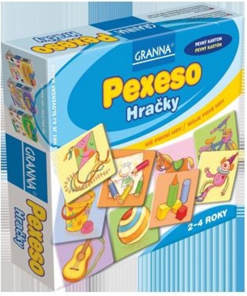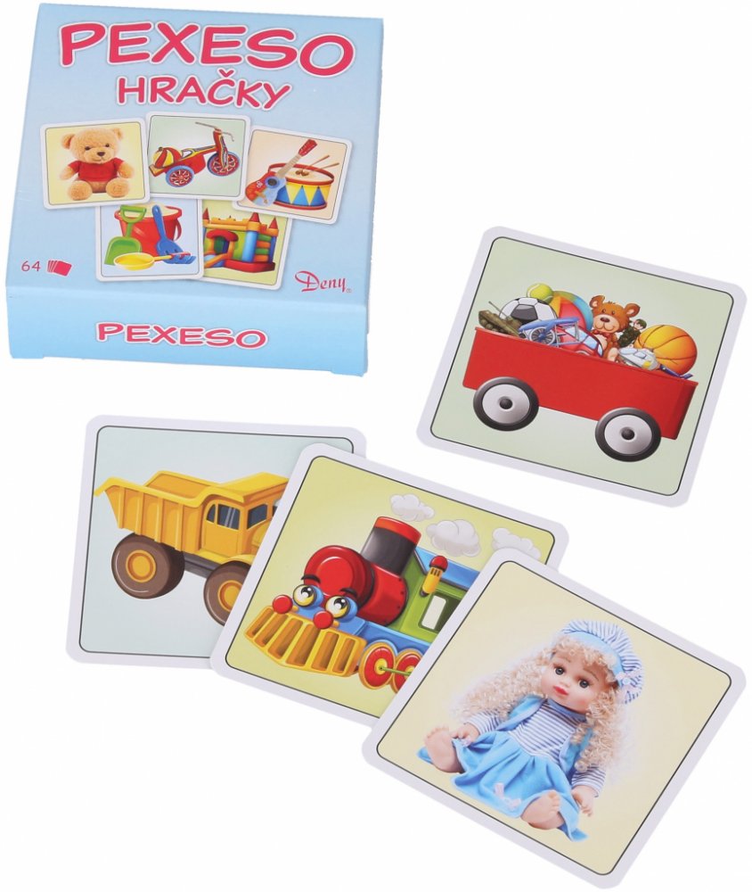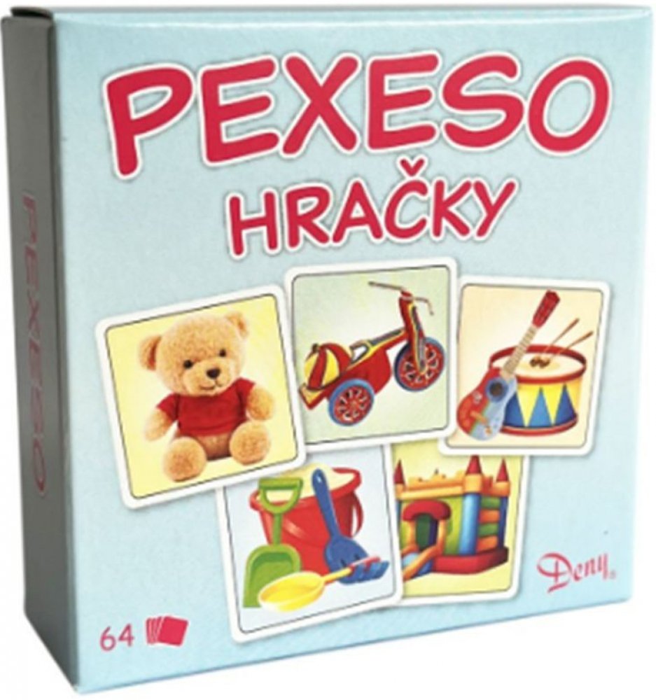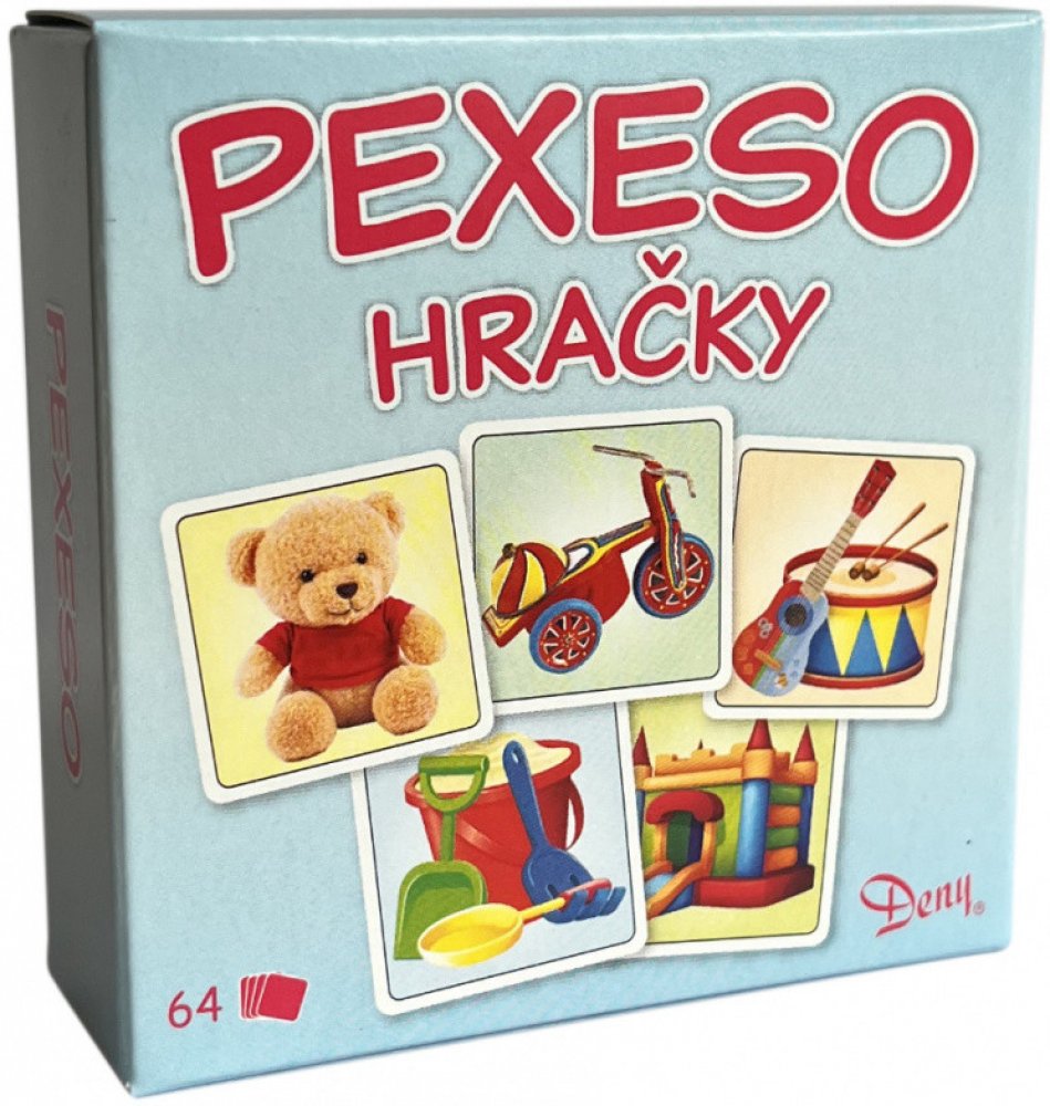 Dalším přírůstkem do řady MÉ PRVNÍ HRY je pexeso s motivy hraček. Pravidla přinášejí dvě varianty hry. Nejmenší děti rozvíjejí své pozorovací schopnosti při hledání dvojic obrázků, o něco starší hráči už cvičí svou paměť a soustředění při hře podle pravidel klasického pexesa. Díky aktivní účasti rodičů se děti navíc mohou učit rozeznávat barvy a pojmenovávat hračky vyobrazené na kartičkách; rozšiřují si tak svou slovní zásobu a zdokonalují své vyjadřovací schopnosti.