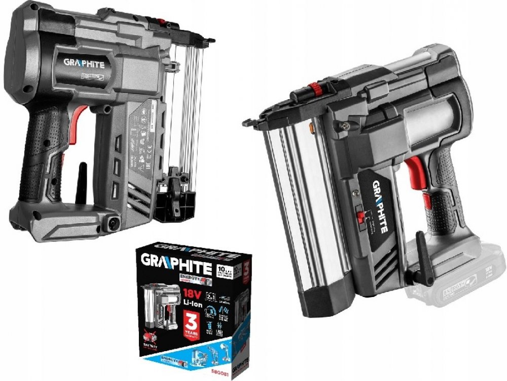 Akumulátorová sešívačka GRAPHITE 2 v 1 je kombinovaná sešívačka a hřebíkovačka. Sešívačka urychluje práci, protože maximální rychlost zarážení svorek nebo hřebíků je až 100/min. Má beznástrojové nastavení hloubky a jednoduché a nepřetržité vypalování. Sešívačka má multifunkční LED indikátor, osvětlení a pogumovanou rukojeť pro pohodlí.