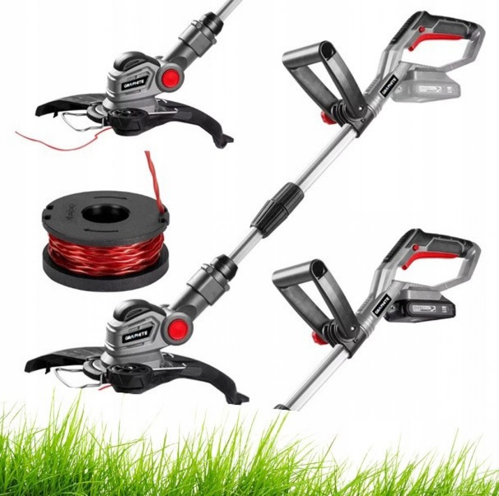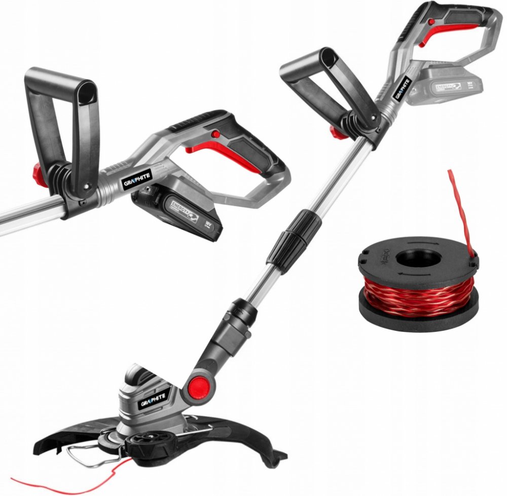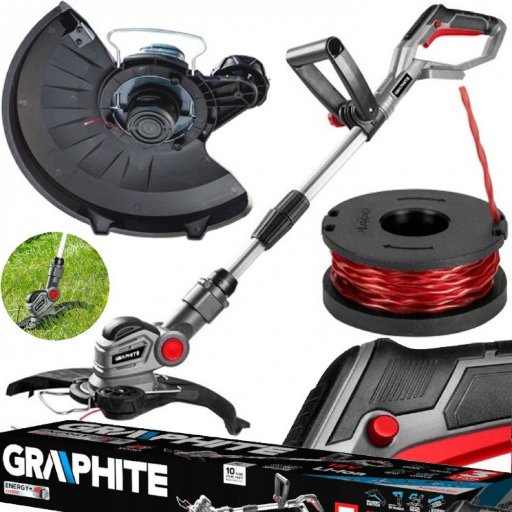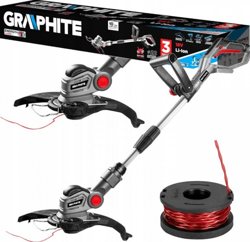 Akumulátorový strunový vyžínač 18V od společnosti GRAPHITE je funkční nářadí Energy+ a je kompatibilní s lithium-iontovými akumulátory.