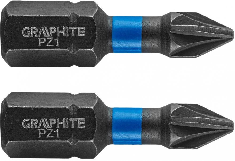 Rázové bity GRAPHITE (ref. 56H503) Typ PZ1, celková délka 25 mm, jsou robustní bity určené k použití při větších točivých momentech pomocí šroubováků nebo rázových utahováků. Vyrobeno z vysoce kvalitní oceli S2, která má zvýšenou pružnost a mechanickou pevnost. Torzní zóna, která se otáčí při vysokém kroutícím momentu, snižuje přenos síly, díky čemuž je vrták odolnější vůči zlomení a několikanásobně se prodlužuje jeho životnost. Pracovní konec bitu zaručuje dokonalé uchycení. Značka GRAPHITE nabízí široký sortiment elektrického nářadí, které splňuje potřeby profesionálů.
