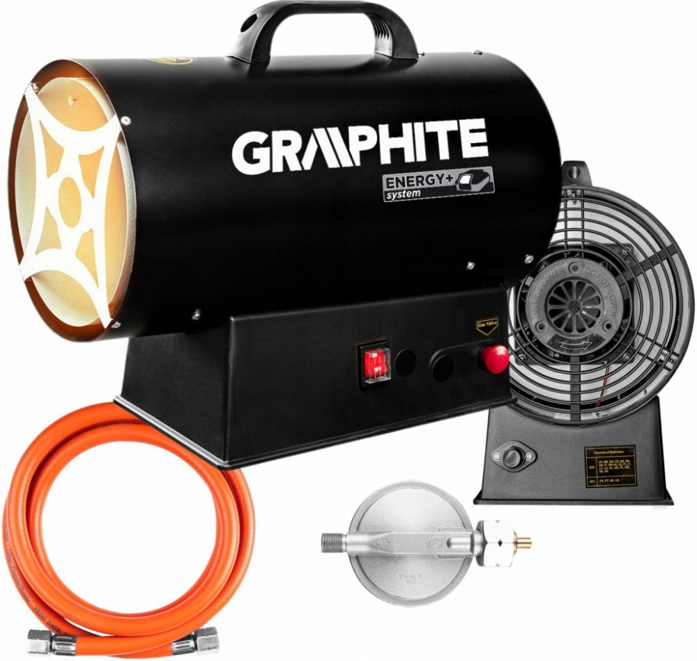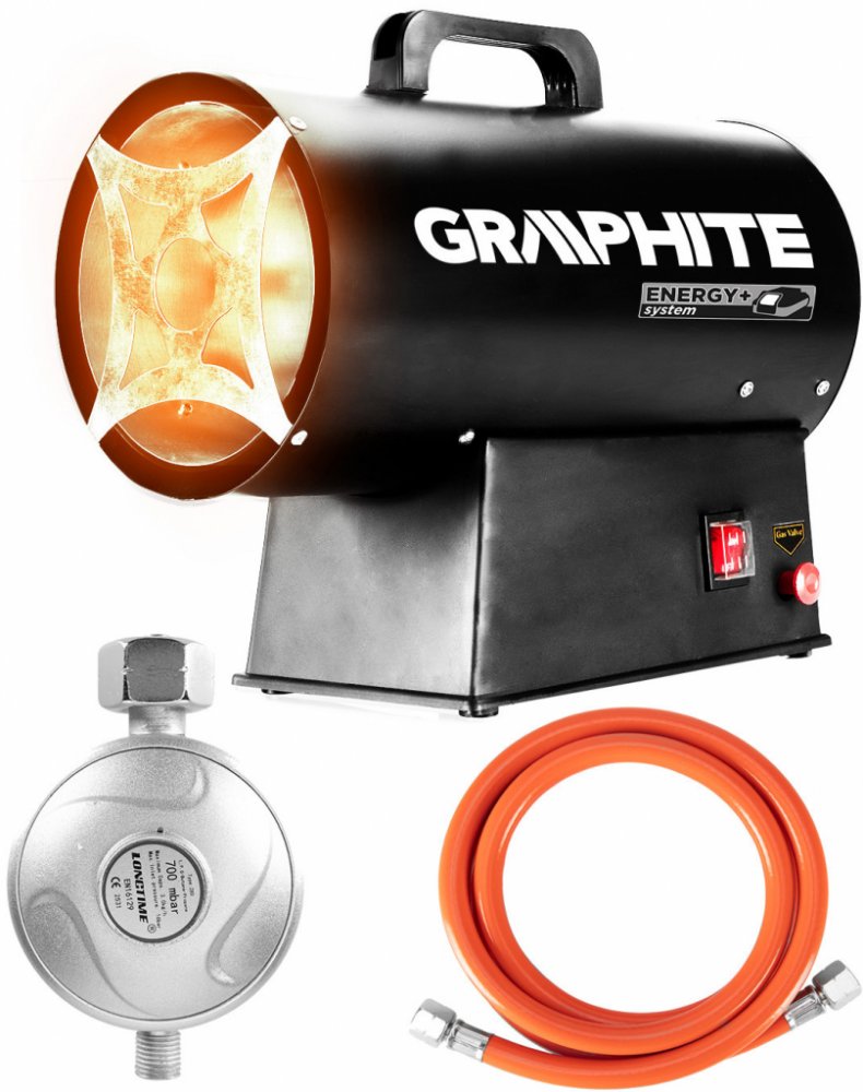 Plynové topidlo GRAPHITE (ref. 58GE101) s piezo zapalováním a výkonem 30 kW je určeno pro vytápění místností jako jsou haly, sklady nebo staveniště.