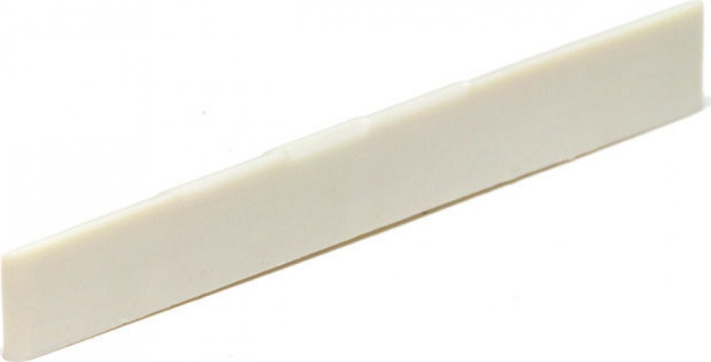 Kobylkový pražec vhodný pro klasické kytary. Díky speciální stavbě a použitým materiálům dodává kobylkový pražec nástroji jasnější odezvu v oblasti výškových frekvenci a výrazně napomáhá s harmonickým obsahem a intonací kytary. Rozměry: 80,01 x 2,57 x 10,01 mm. Barevné provedení: White.