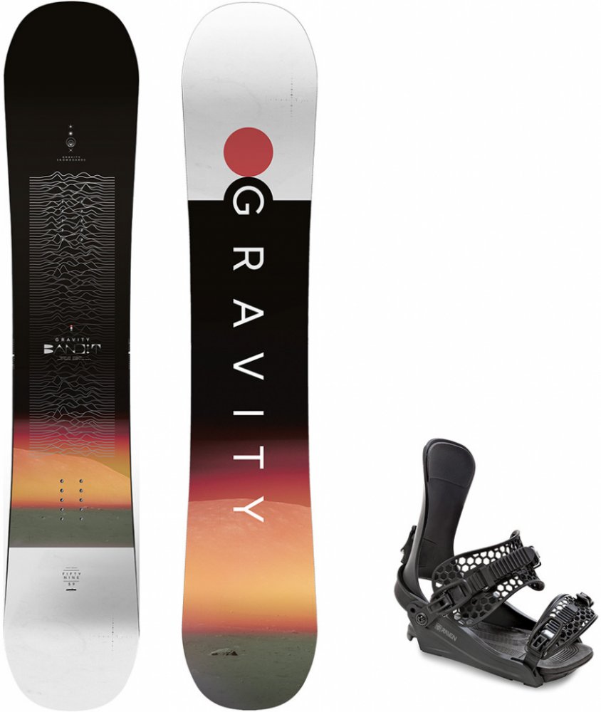 Univerzální all-mountain prkno Gravity Bandit s camber prohnutím a directional twin shapem. Hrany jsou opatřeny uretanovými sidewally, které je chrání na překážkách. Svrchní strana desky je opatřena UV lakem, který zvýrazňuje barvy a chrání je před vyblednutím. Snowboard nabízíme v klasické i wide verzi.