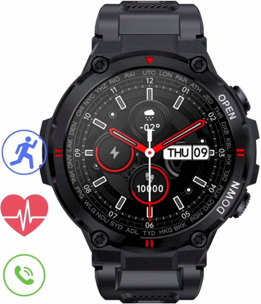 Popis : Materiál krytu: plast. materiál řemínku: silikonová guma. dialogový procesor 14695 HX3690Q . GPS: BCM47755 baterie: 400 mAh - pohotovostní doba až 20 dní, pracovní doba 5 - 7 dní. Magnetické nabíjení. Paměťová karta: Flash 128MB Stupeň ochrany proti prachu a vodě: IP67 Funkce Volání přes Bluetooth Monitorování hladiny kyslíku v krvi Informace o počasí Tlakoměr Monitorování srdeční činnosti Zpráva o aktivitě 7 sportovních režimů Stopky Budík Připomenutí cvičení Monitorování spánku Ovládání hudby Připomenutí zprávy Vzdálená fotografie Připomenutí pití vody, užívání léků Výběr jasu obrazovky Výběr znaku - možnost nahrát vlastní fotografii Stimulace obrazovky pohybem zápěstí Najít moje chytré hodinky Rozměry : Maximální obvod: 200 mm Šířka obalu: 50 mm Výška obálky: 55 mm Šířka pásu: 22 mm Barevné provedení: 1: Černý kryt Černý řemen příchozí zprávy S těmito chytrými hodinkami vám neunikne, co je důležité. Od nynějška se na štítu budou v reálném čase zobrazovat SMS a zprávy z Facebooku, Twitteru, WhatsAppu, Skypu atd. Nemusíte se odtrhávat od práce nebo činnosti - pro zobrazení zpráv stačí zvednout ruku! Zprávy, hovory a informace - od nynějška vše na jednom místě a na jedné obrazovce. < /p>