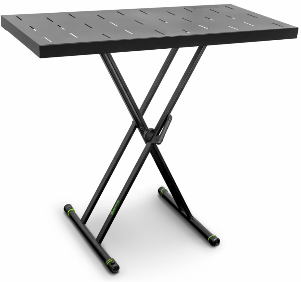 sada stojan s nosnout deskouSada stojanu pro klávesové nástroje a úložné desky společnosti Gravity. Sada poskytuje kompaktní rozměry ve složeném stavu, což je ideální pro časté přenášení. Stabilní stojan spolu s deskou zajišťuje jednoduchou a rychlou montáž. Zároveň poskytuje maximálně stabilní konstrukci pro použití na koncertech a ve studiu. Deska se šířkou 100 cm a hloubkou 48 cm poskytuje dostatek prostoru pro notebook, DJ mixpult, kontroler a menší syntezátor. Set nabízí nosnost až 60 kg. Perforovaná deska zajišťuje maximální stabilitu zařízení. Sada přináší jednoduchou montáž bez nutnosti šroubů a jiného montážního příslušenství Product type Stands and Tripods Type Keyboard stands Weight 11,359 kg GKSRD1 - KS RD 1 - díl 1 úložná deska Product type Stands and Tripods Type Keyboard stands Material Steel Surface Powder coated Colour Black Max. support depth 480 mm Max height 43 mm Width 1000 mm Depth 465 mm Max load (support) 60 kg Suitable for tube diameter 25 - 35 mm Weight 6,62 kg GKSX2 - KSX 2 - díl 2 Product type Stands and Tripods Type Keyboard stands Material Steel Surface Powder coated Colour Black Decks 1 Max. support depth 400 mm Min height 100 mm Max height 900 mm Max load (support) 65 kg Interchangeable rings 1 x 15 mm, 4 x 20 mm, 4 x 30 mm Black ring pack included Yes Weight 4,45 kg Výroba :CN