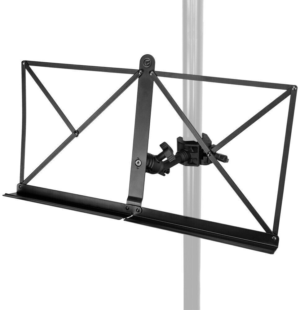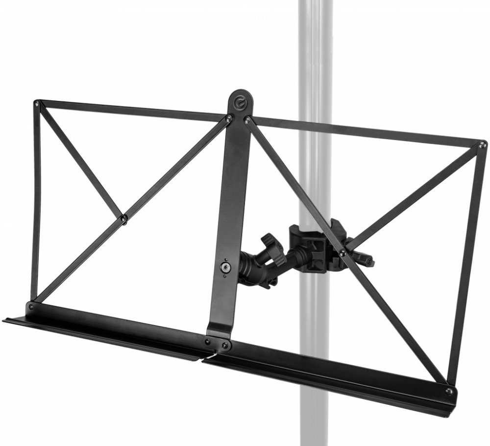 Rychlá a snadná instalace je možná díky upínacímu ramenu. Díky velkému rozsahu upínání od 15 do 35 mm a možnostem otáčení o 360° a náklonu o 180° lze skládací držák na noty nastavit podle potřeby, například na vašem mikrofonním stojanu. Nejen, že to uvolní místo na jevišti, ale také zajistí, že budete mít vždy jasný výhled na své noty.