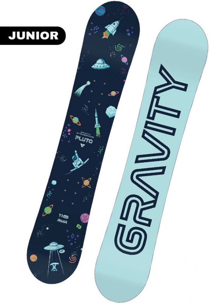 Snowboard Gravity Pluto pro ty nejmenší jezdce. Prkno je ideální pro úplné začátečníky, protože pomáhá v obloucích i plynulé jízdě. Je měkké a odpouští chyby.