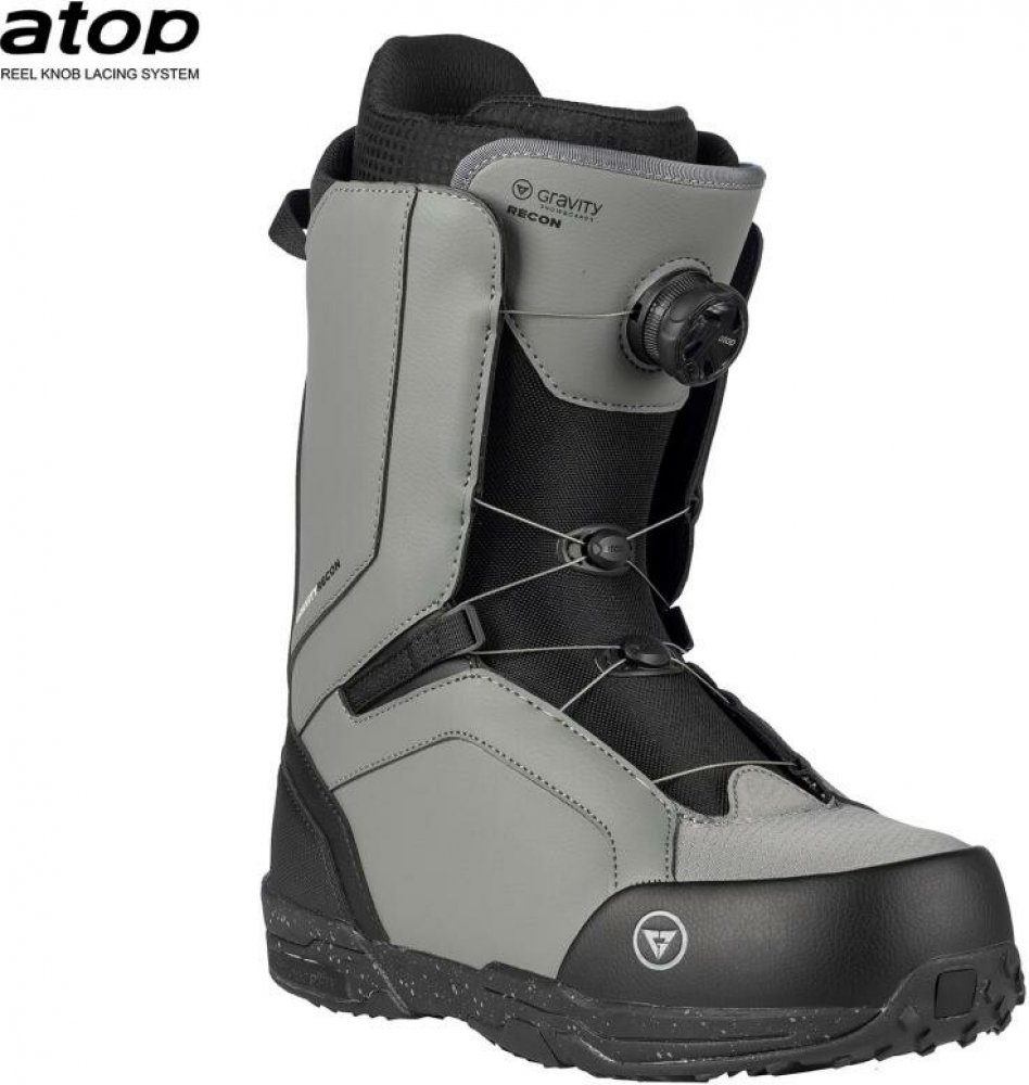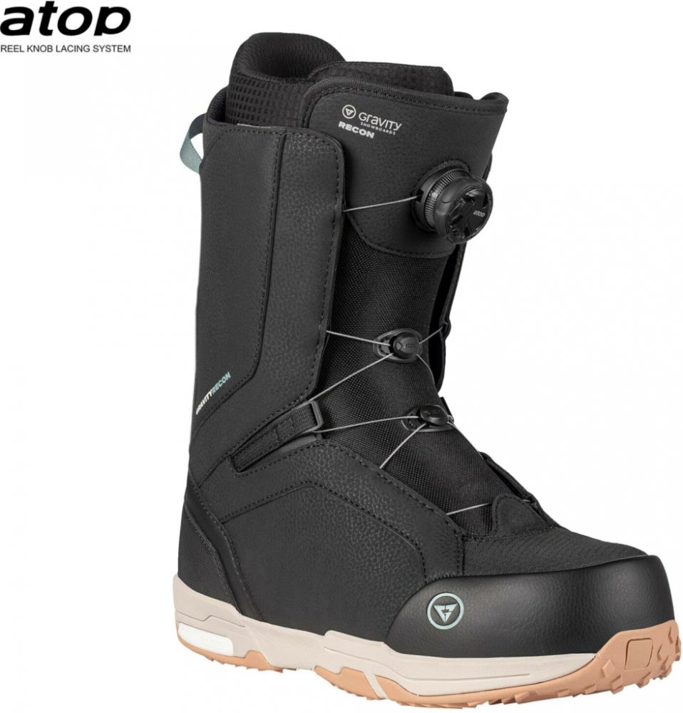 Pokud hledáš všestranné boty na snowboard, které ti skvěle padnou a nabídnou vyladěný mix pohodlí a výkonu, zbystři. I letos v kolekci od Gravity najdeš model Recon vybavený jednoduchým utahovacím systémem Atop. Stačí párkrát otočit kolečkem a botu si dotáhneš přesně podle svých potřeb, a to i s nasazenými rukavicemi.