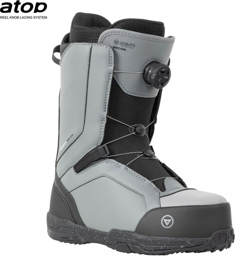 Pánské snowboardové boty Gravity Recon Atop Boa - jsou univerzálním modelem pro všechny jezdce, kteří hledají spolehlivost, pohodlí a výborný přenos síly. Díky systému Atop je utáhneš během pár vteřin, aniž bys musel sundávat rukavice. Vnitřní botička s kotníkovou podporou zajistí, že noha pevně sedí a pata se nezvedá, což ti dodá jistotu při jízdě. Podešev s kombinací gumy, EVA pěny a gelové vrst...
