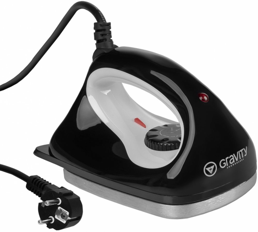 Žehlička Gravity Wax Iron Skvělá žehlička Gravity Wax Iron je určená pro úpravu skluznice snowboardu a lyží při voskování. Žehlička má rozsah teploty od 80° C do 170° C. Požadovanou teplotu nastavíte pomocí otočného regulátoru. V balení je přiložen návod k použití, jehož součástí je i podrobný návod na správné voskování skluznice. Po použití nechte žehličku alespoň 30 minut vychladnout. Pomocí nylonového kartáče odstraňte z žehlící plochy zbytky vosku.