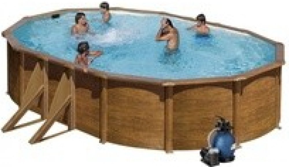 500 x 300 cm oválné ocelové a plechové stěny dřevěné nadzemní GRE písková