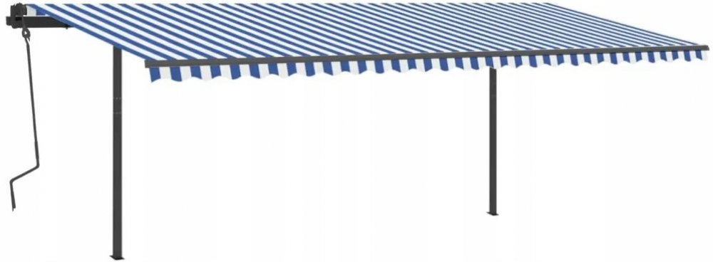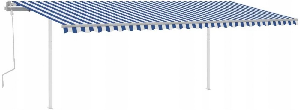 Ručně Zatahovací Markýza Se Sloupky Modro-bílá / 6 x 3 m