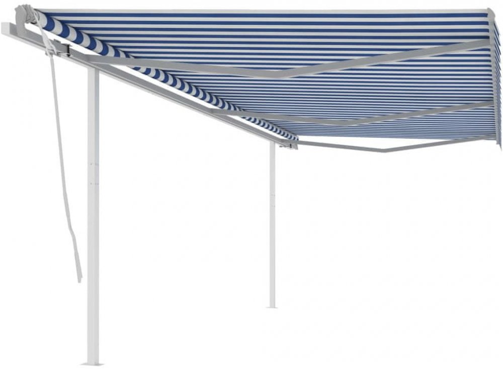 Greatstore Ručně zatahovací markýza se sloupky 6 x 3 m modrobílá