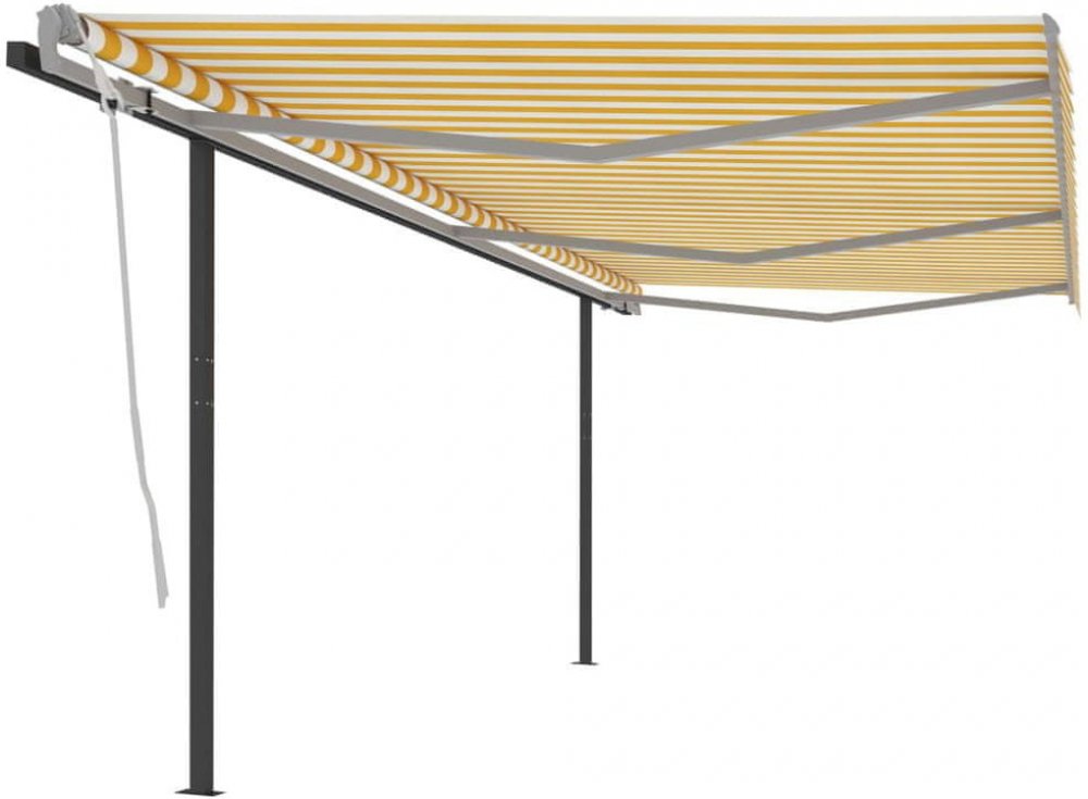 Ručně Zatahovací Markýza Se Sloupky Žluto-bílá / 6 x 3 m