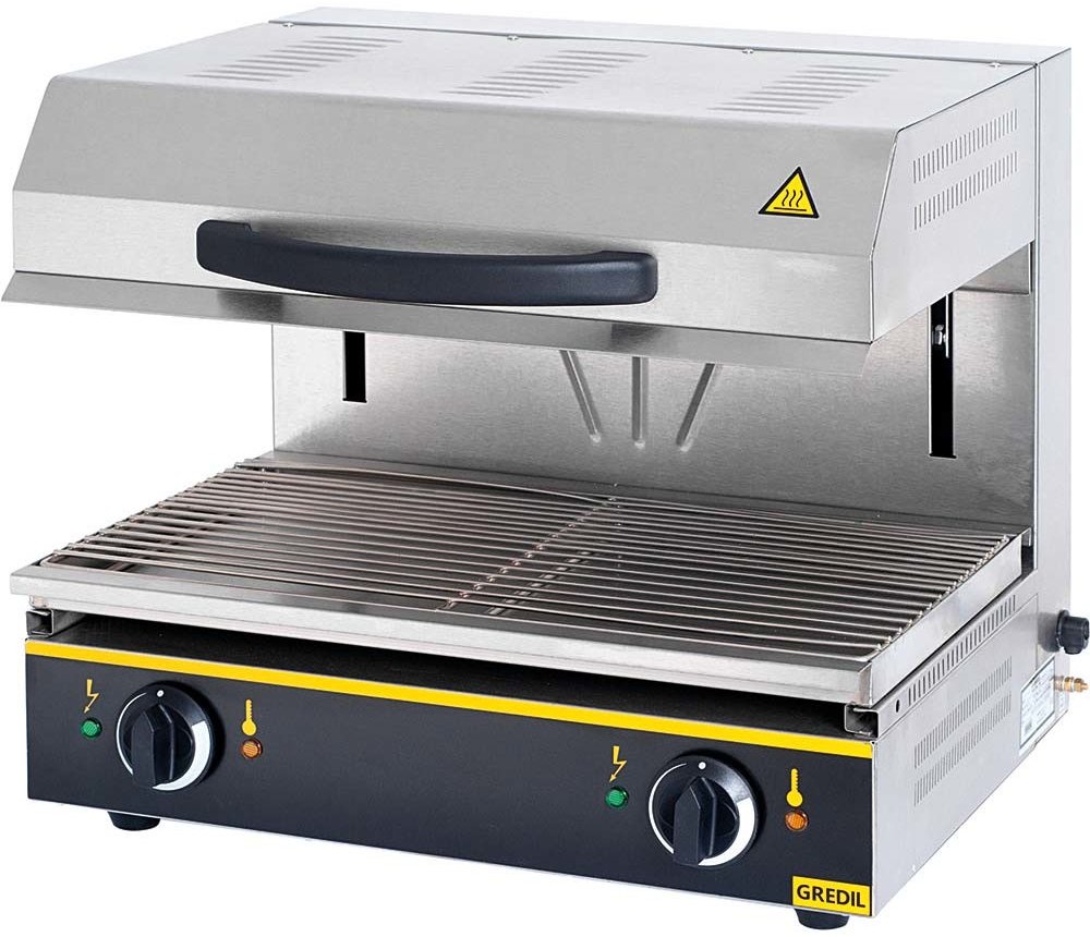 Salamandr elektrický o síle 4 kW od firmy Gredil s indexem 744000 je vyroben z nerezové oceli. Salamandr má pohyblivou horní část umožňující otáčení, bezpečnostní pojistku proti přehřátí, vyndavací plochu s roštěm, dvě topná tělesa z nerezové oceli.