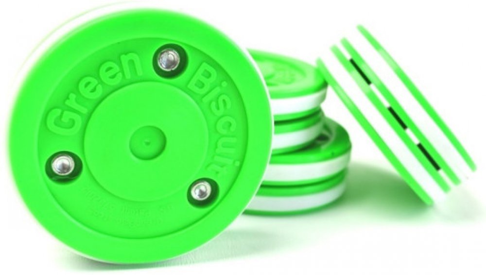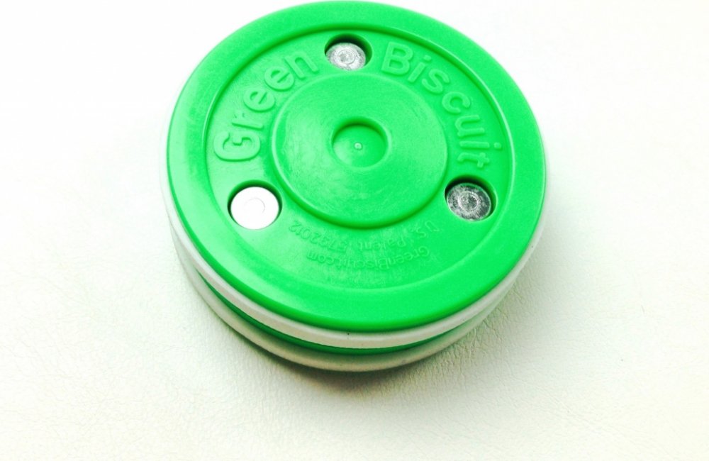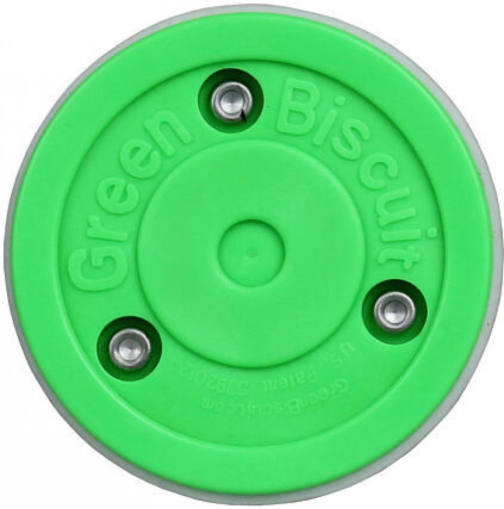 Vše vzniklo myšlenkou, jak vytvořit puk, který klouže a nepřevrací se na asflatu nebo podlaze. A tak vznikl treninkový puk Green Biscuit Pro, který má snížené tření a pohlcuje většinu vibrací z povrchu. Rozměrově je stejně velký jako klasický puk, ale je o 28g lehčí, takže ladně klouže po různých površích, nepřeklápí se a chová se stejně jako puk na ledě. Puk Green Biscuit Pro je dvoudílné kosntrukce, která je spojena kovovými nýty a distančními podložkami, takže tlumí nárazy. Po stranách jsou gumičky, které tlumí nárazy. Puk Green Biscuit Pro je z tvrzeného plastu, takže vydrží dlouhé hodiny stickhandlingu. Pozor: treninkový puk Green Biscuit Pro je pouze pro stickhandling, nikoliv střelbu.