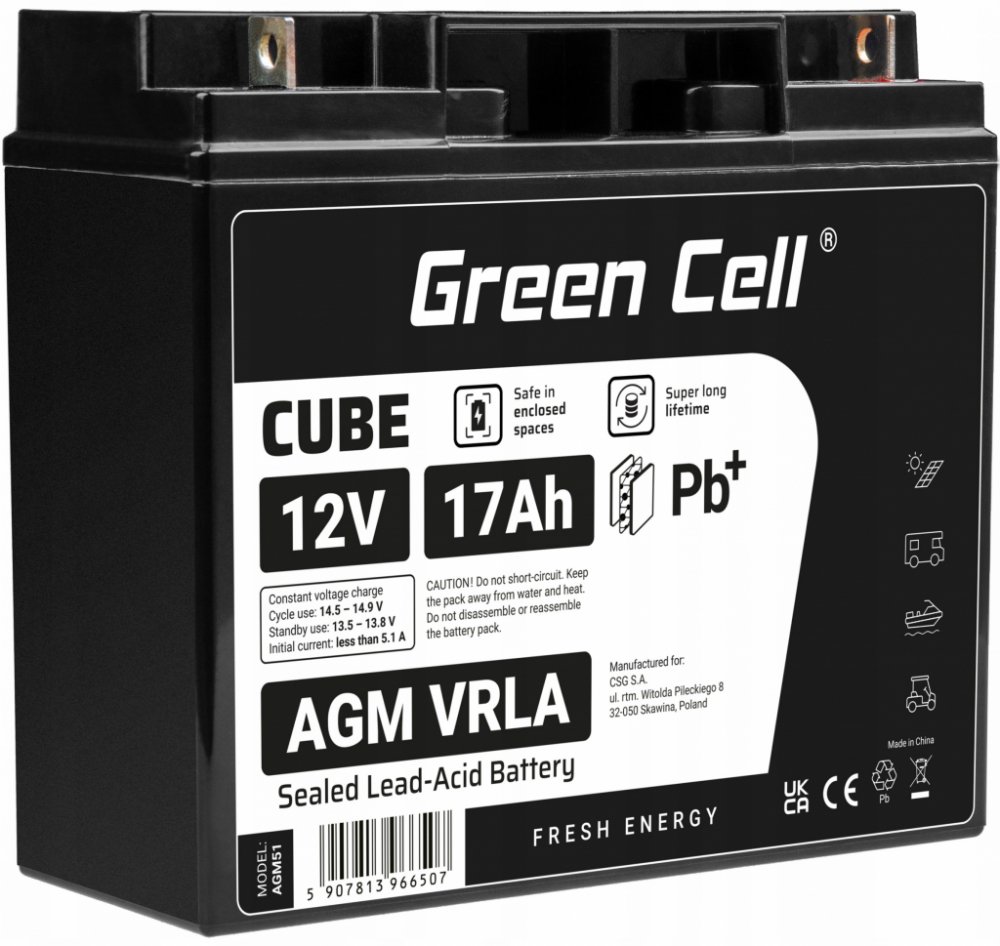 Baterie AGM byly navrženy i pro ty nejextrémnější podmínky. Použitá skleněná vlákna činí elektrolyt pevně uzavřený v pouzdru, což umožňuje použití baterie v libovolné poloze bez obav z rozlití obsahu. To je zvláště důležité v případě poháněných hraček, které jsou vystaveny různým typům otřesů. Díky tomu jsou baterie AGM Green Cell pro uživatele zcela bezpečné.