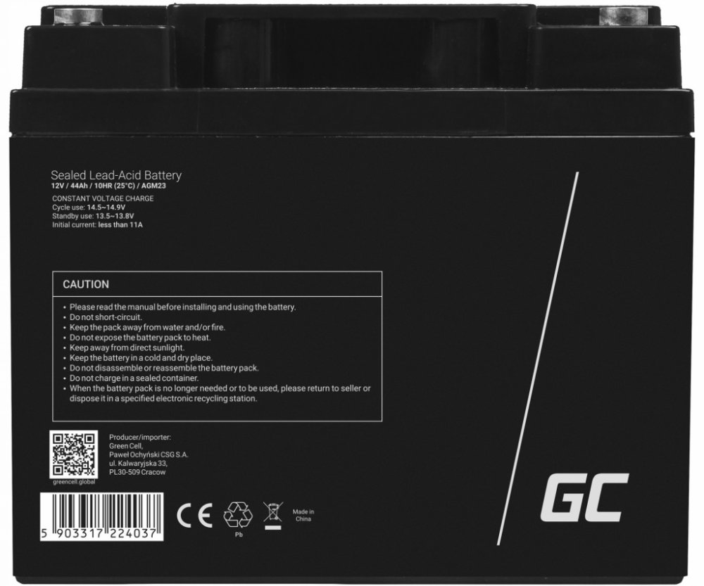 Baterie / akumulátor Green Cell AGM23 AGM Battery 12V 44Ah s kapacitou 12V je vyrobena z kvalitních materiálů