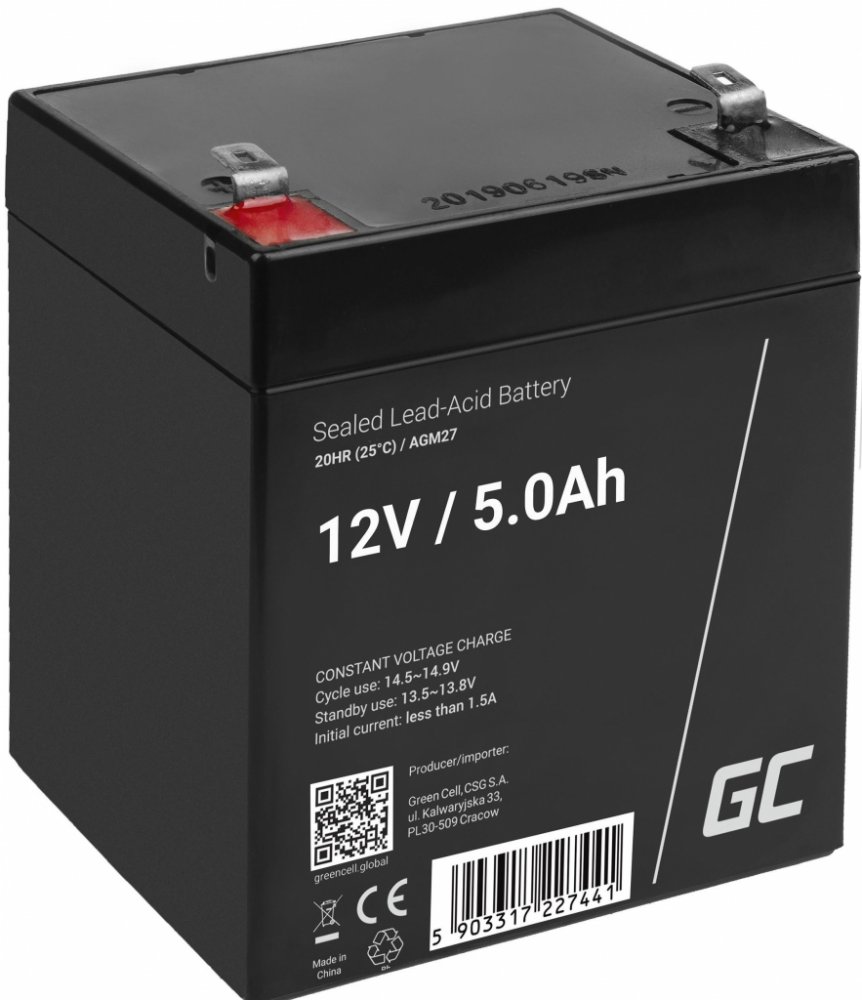 Green Cell AGM VRLA 12V 5Ah maintenance-free battery for the alarm system, cash register, toys AGM27